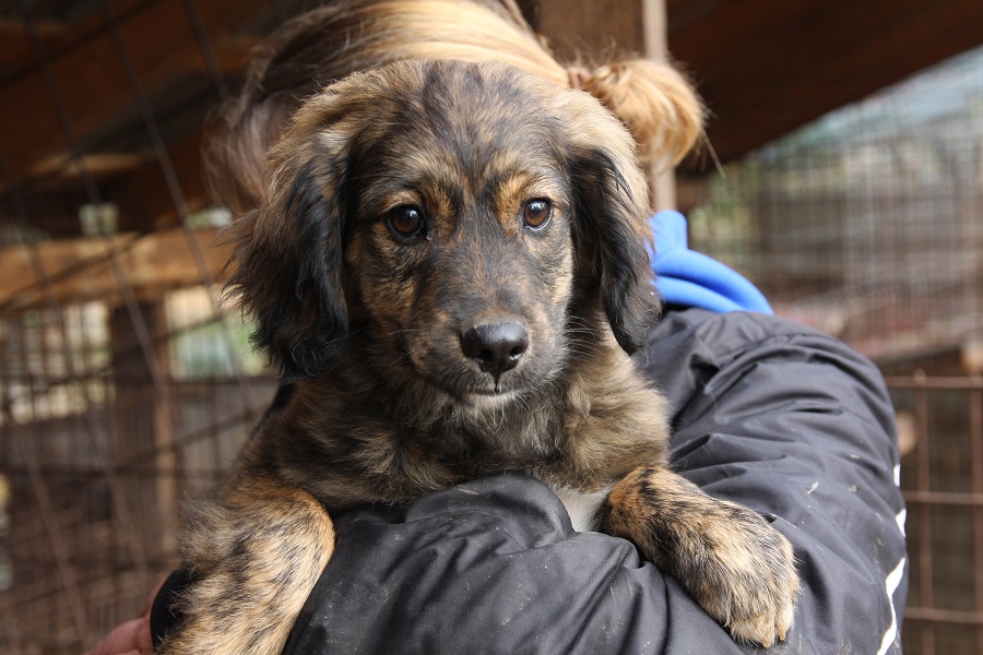 Aniela hat ihn aus einem Hinterhof gerettet, wo er mit seinen 5 Geschwistern und der Mutter in Matsch und Dreck gelebt hat. Die Mutter wurde kastriert, die Welpen sind nun in Bucov