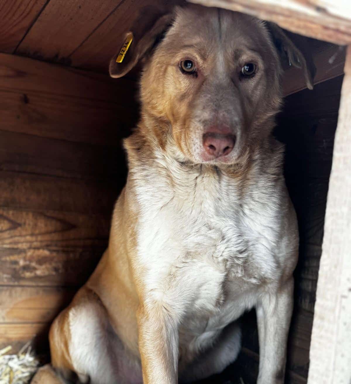 BALTHASAR war bei unserem Besuch nur in seiner Hütte. Er zeigte leider kein Interesse an uns. In dem gemischten Rudel zeigt er sich verträglich. Leider lebt er dort mit anderen etwas scheuen Hunden zusammen, wodurch er seine Unsicherheit nicht ablegen kann.