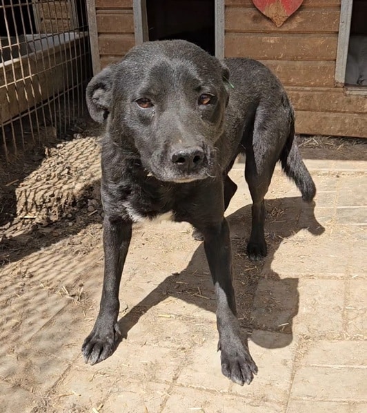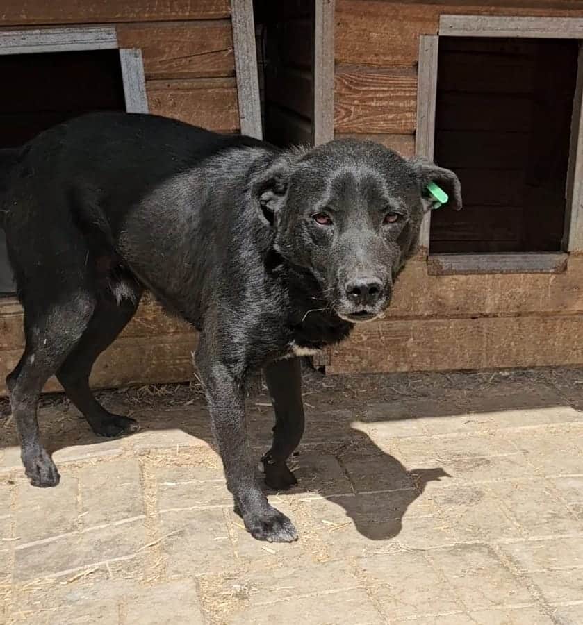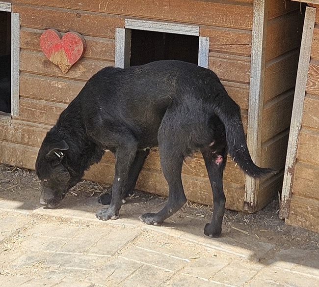Balthazar hat Gott sei Dank keine neuen Bisswunden, wahrscheinlich ist der dominante Hund im Zwinger ausgezogen. Er ist immer noch sehr zurückhaltend uns Menschen gegenüber. In der Hütte konnten wir ihn jedoch ohne Abwehrverhalten streicheln – genießen konnte er es aber noch nicht.