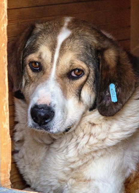 BANI wirkte bei unserem Besuch sehr introvertiert. Er lag in seiner Hütte und beobachtete das Treiben draußen. Wenn es ihm zu viel wurde, schlich der große Rüde einfach unauffällig eine Hütte weiter.