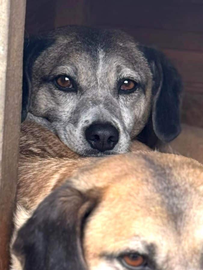 BANJA versteckt sich bei ihren Hundekumpels und hat Angst vor jeglicher Annäherung. Es ist so traurig, dass sie nie eine Chance zur Ausreise bekommen hat und nun nur noch für Hundeprofis in Frage kommt.