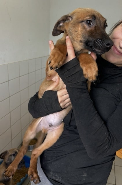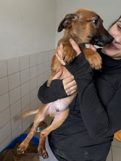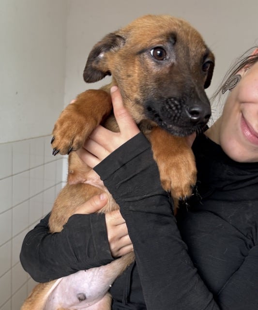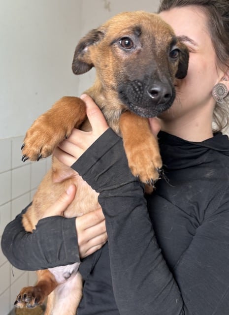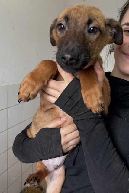 Der zuckersüße BANJO zeigte sich bei unserem Besuch sehr offen und freundlich. Rührend verteilte er Küsschen und ließ sich problemlos auf dem Arm halten. Er genoss sichtlich den kurzen Moment der Geborgenheit. Welpentypisch ist BANJO sehr neugierig und verspielt und teilt sich verträglich mit seinen Geschwistern einen Raum. Doch der Shelter ist absolut der falsche Ort für solch aufgeweckte und lebensfrohe Hundekinder, die nur zu gern mit ihren Menschen die Welt erkunden würden. Wir hoffen sehr, dass BANJO und seine Geschwister schon bald diese Chance erhalten.