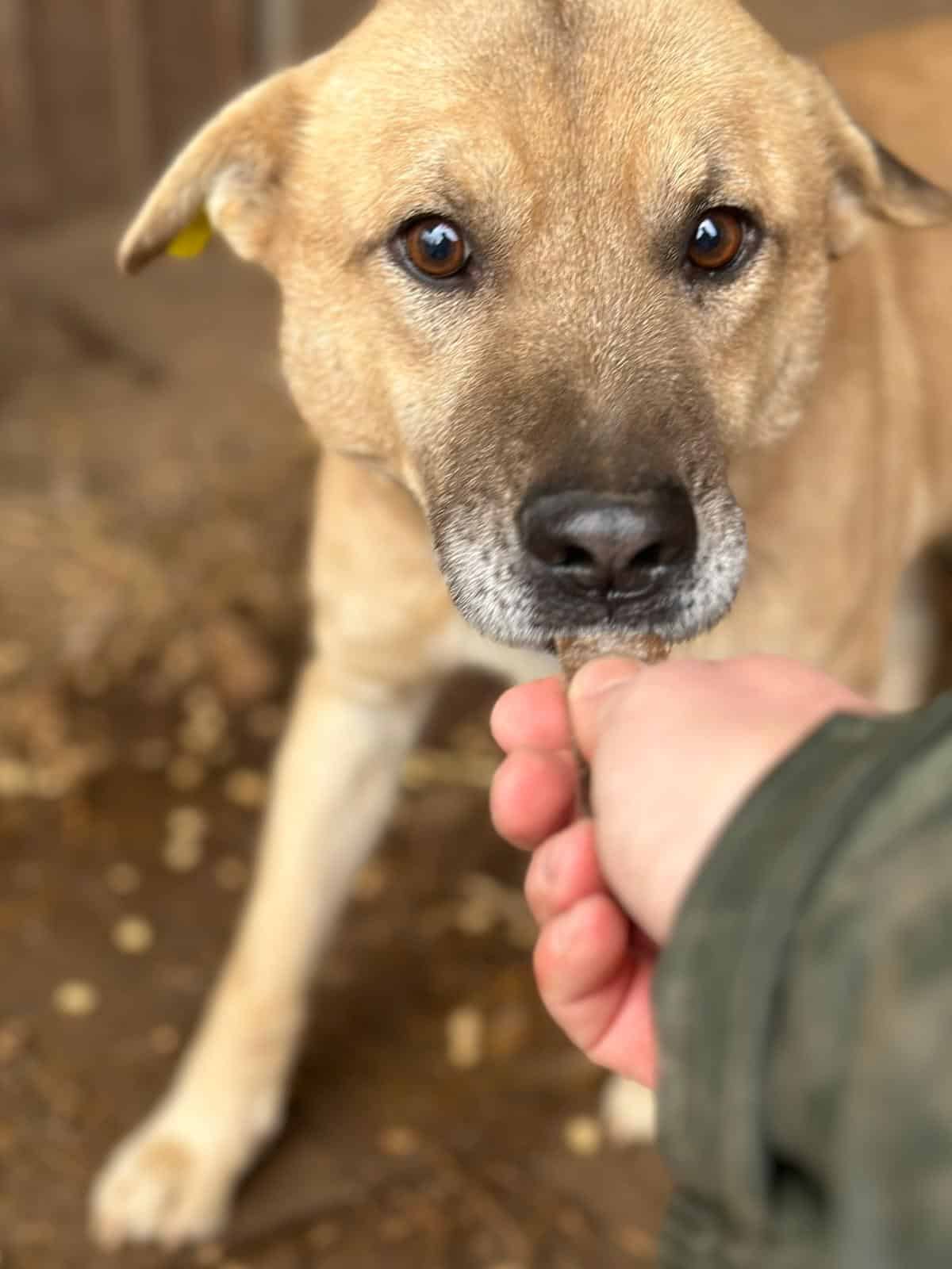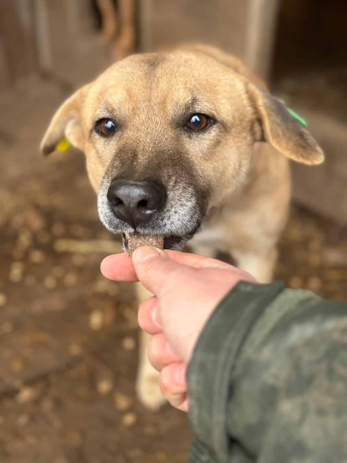 Überhaupt nicht aufdringlich. Taut innerhalb weniger Minuten auf. Überall dann gut anfassbar und hervorragend mit Leckerchen zu bestechen. Macht in der Hundegruppe einen sehr verträglichen Eindruck. Hoffentlich wird BARNEBY bald gesehen und muss nicht im Shelter um sein Leben fürchten.