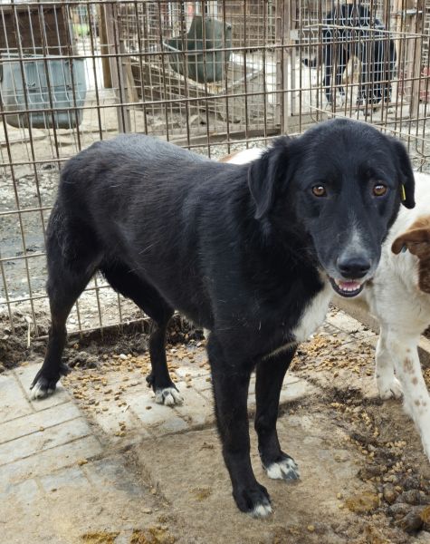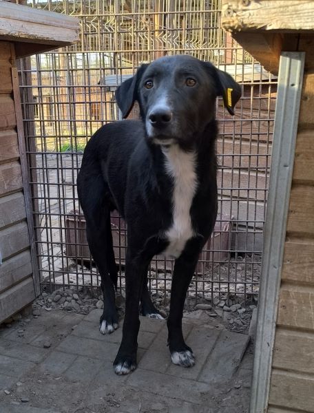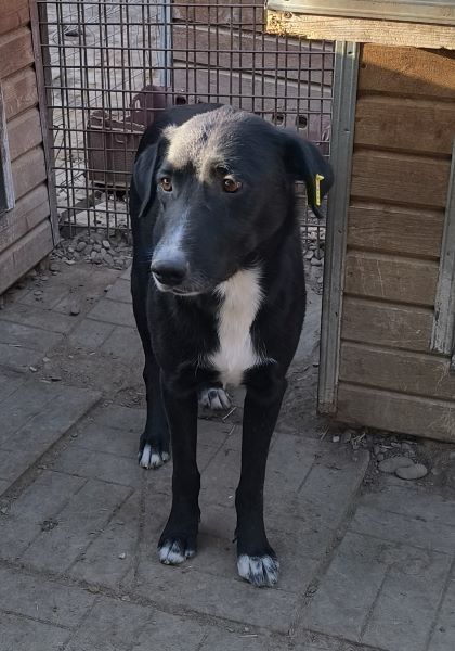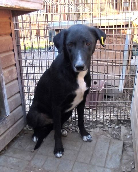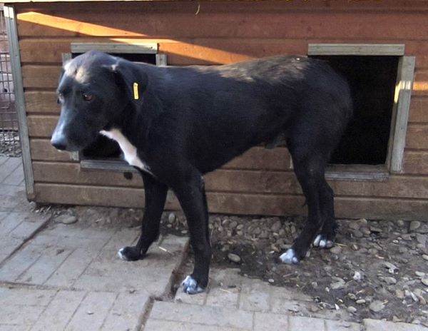 Dieser junge Rüde beobachtete uns zunächst neugierig aus seiner Kennelecke. Anfangs unsicher, nahm er dann nach kurzer Zeit Leckerli vorsichtig vom Boden – mit der Zeit wurde er jedoch immer mutiger und hätte auch fast Leckerli aus der Hand genommen, wenn er nicht gestört worden wäre.