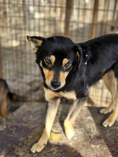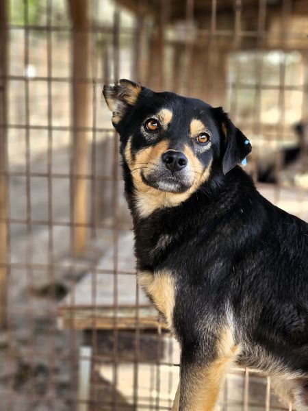 Der süße BASTIAN lebt in einem vollen, kleinen Kennel und das Gewusel der anderen Hunde ist ihm zuviel. So blieb er lieber auf dem Hüttendach und hatte da seinen Rückzugsort. Von dort aus beobachtete er uns neugierig, was wir in seinem Kennel machen. Als wir uns ihm zuwandten, nahm er gerne unsere Leckerchen und wir konnten ihn dabei auch vorsichtig an der Schnauze berühren. Für mehr fehlte ihm der Mut und er wich zurück. In einer anderen Umgebung mit verständnisvollen Menschen, die ihm Zeit zur Eingewöhnung geben, sollte BASTIAN noch zutraulicher werden. Seine neugierige Art wird ihm dabei helfen.