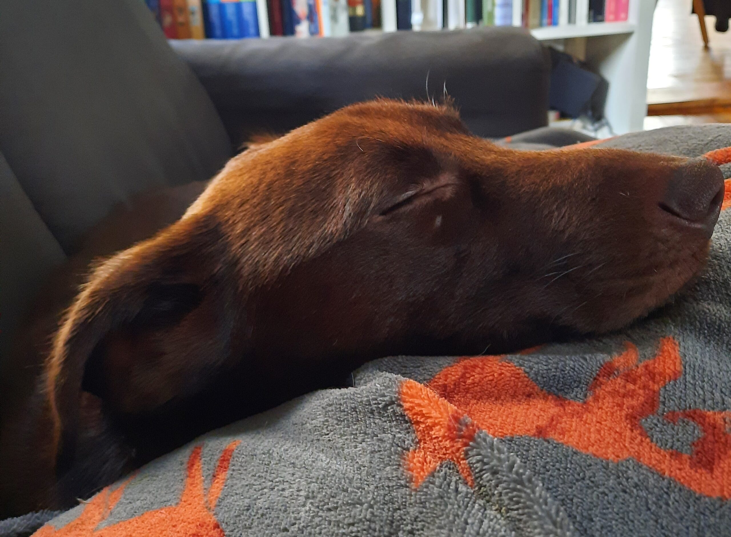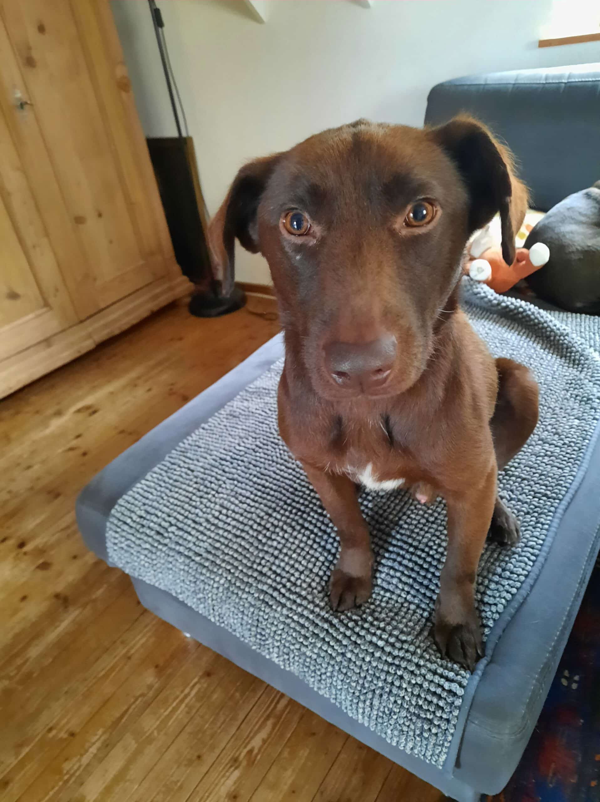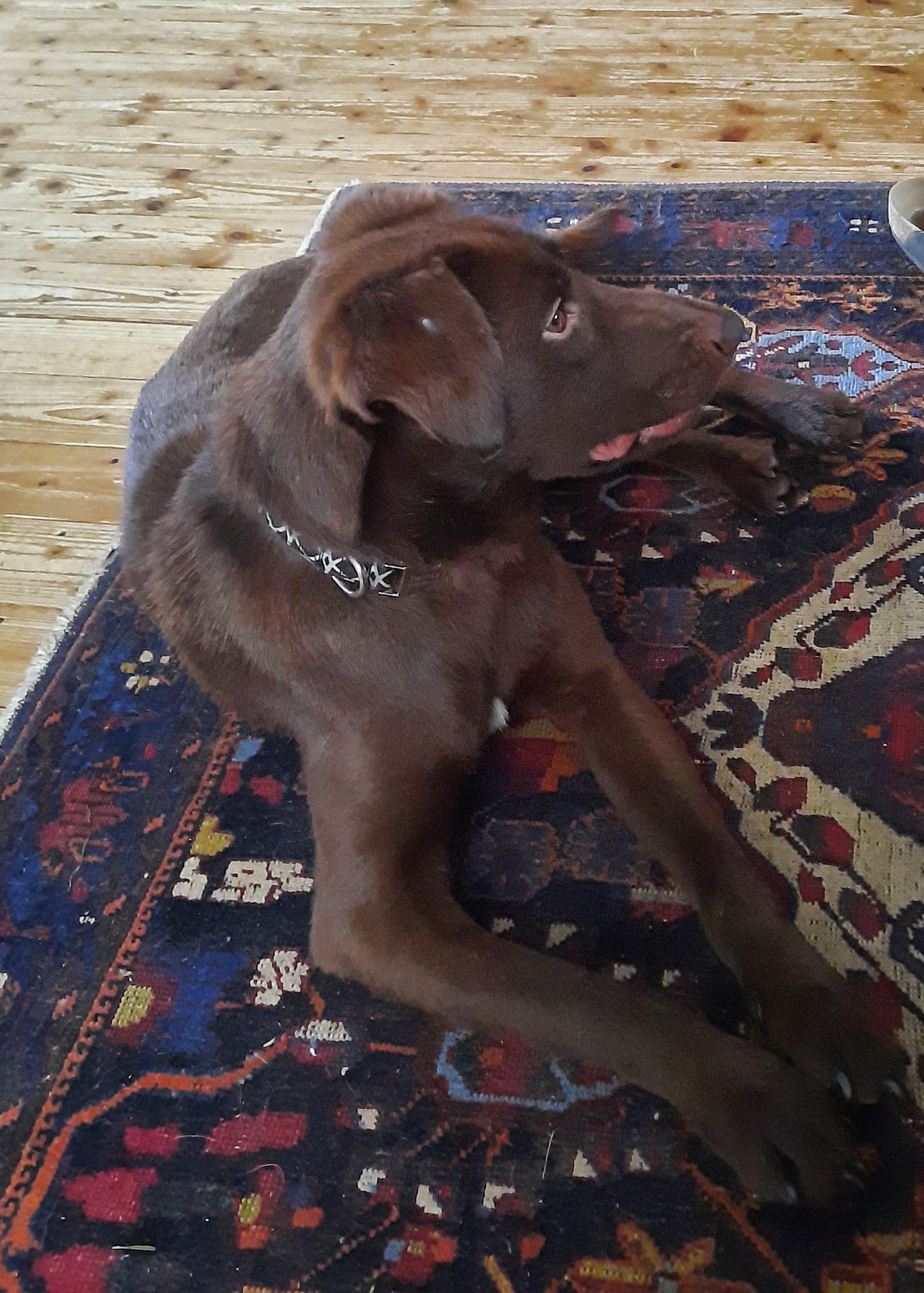 Bastou kann stundenweise alleine bleiben und schläft die Nächte ganz brav in seinem Körbchen durch.