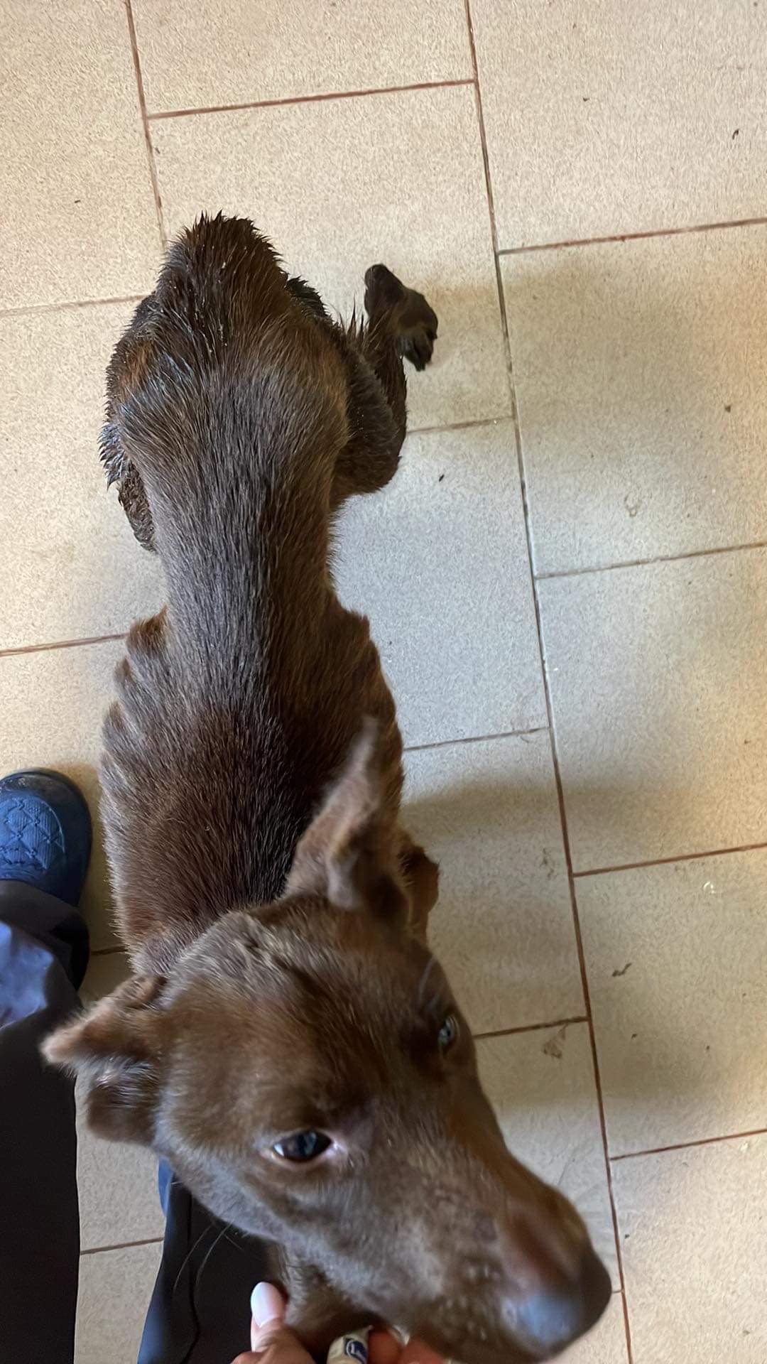 BASTOU wurde auf der Straße gefunden worden. Haut und Knochen… nichts mehr dran. Er ist nun im Tierheim Herculane und wird dort gepäppelt werden.