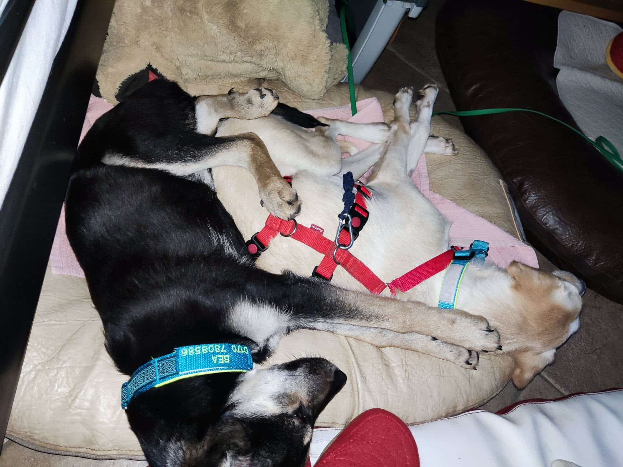 Mit den hundeverständigen Katzen klappt es im Haus wunderbar; sie liegen auch zusammen im Körbchen. Draußen reizt es Bea, ihnen hinterherzurennen. Unsere Katzen sind da gechillt und bleiben einfach stehen.