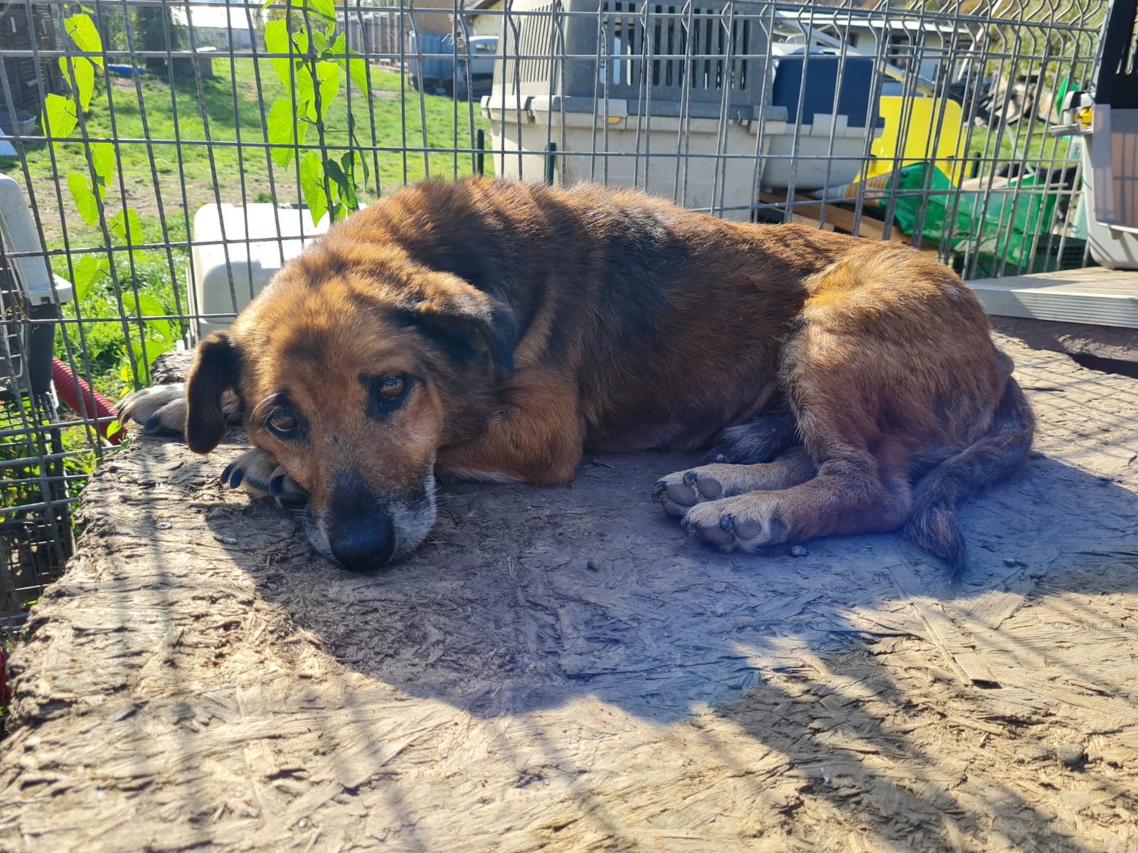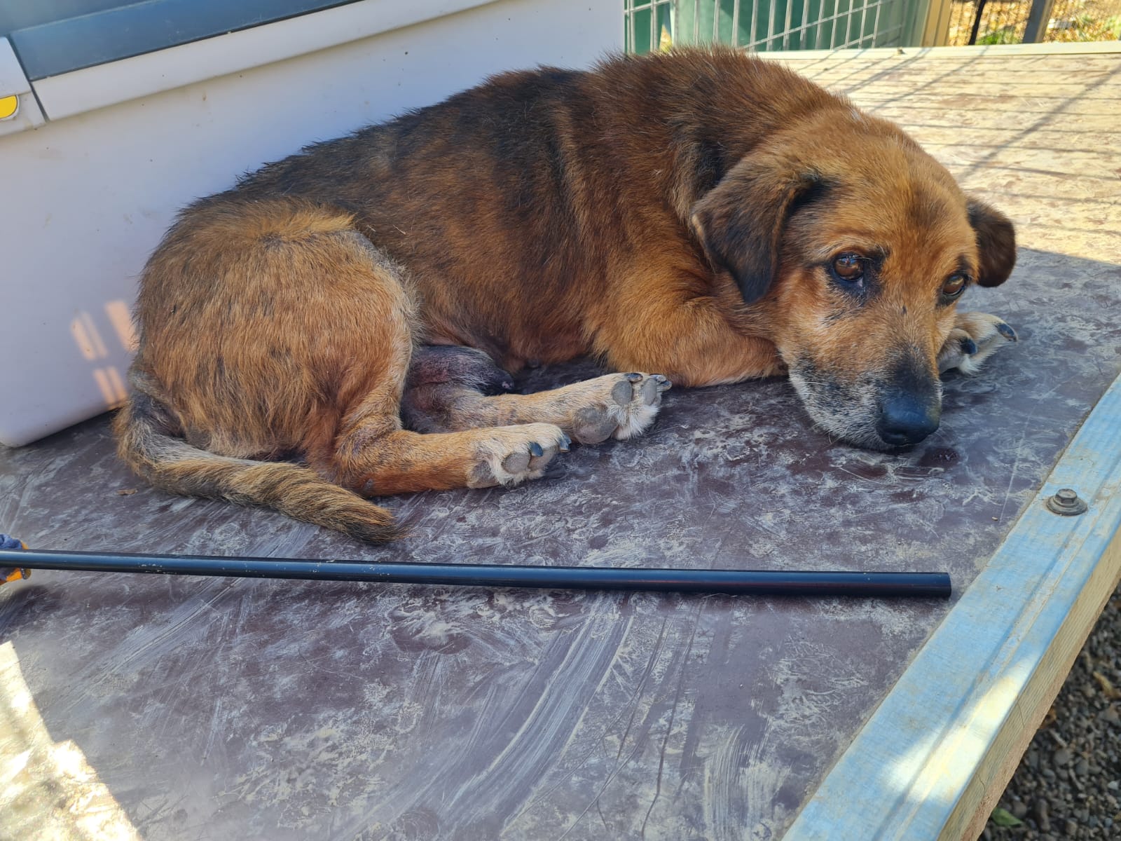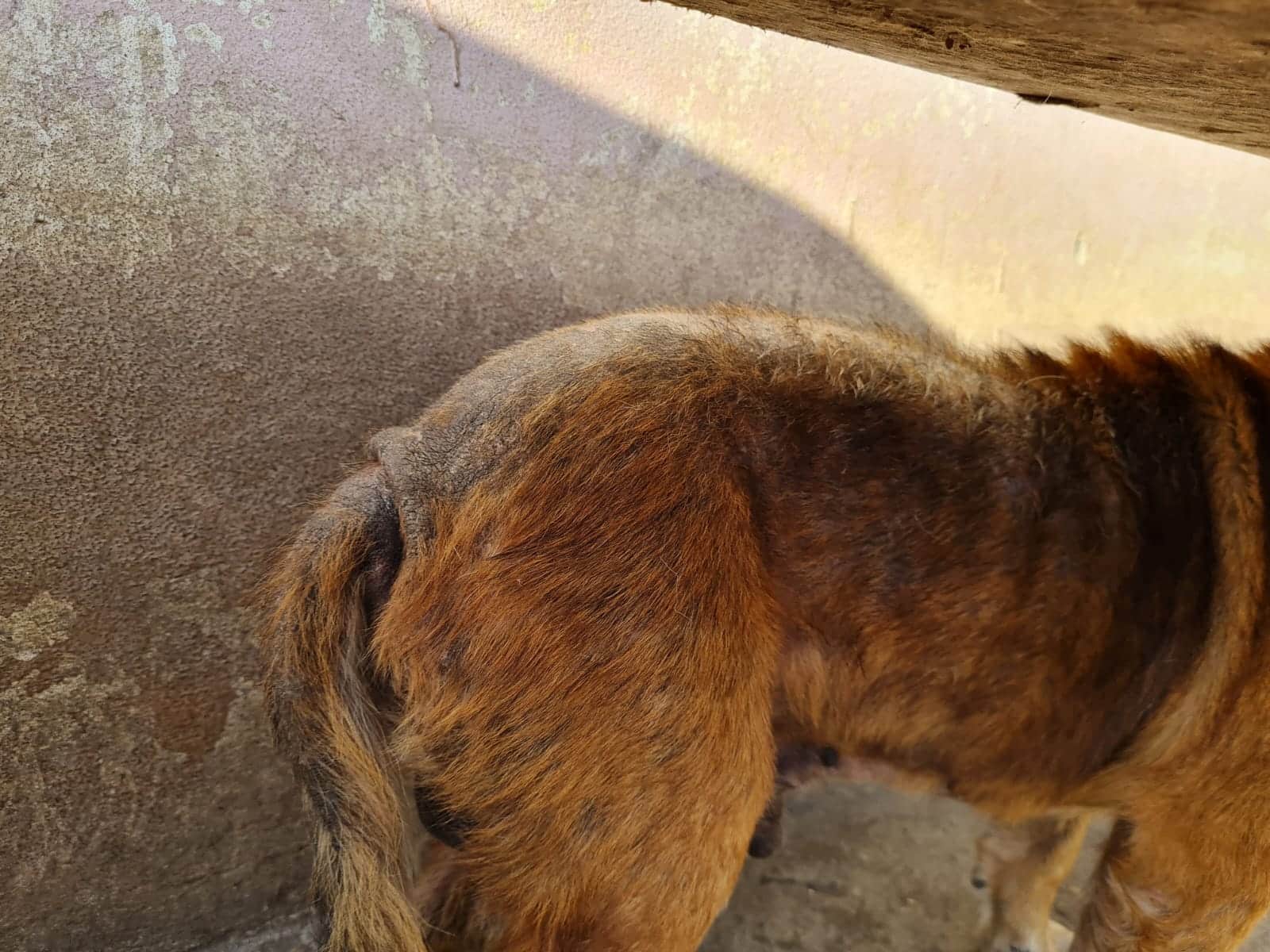 Rüde geb. ca. 2012 Größe: ca. 35 cm starker Milbenbefall am Rücken (11/22), Update 01/23 sein fell sieht schon viel besser aus und hat sich erholt