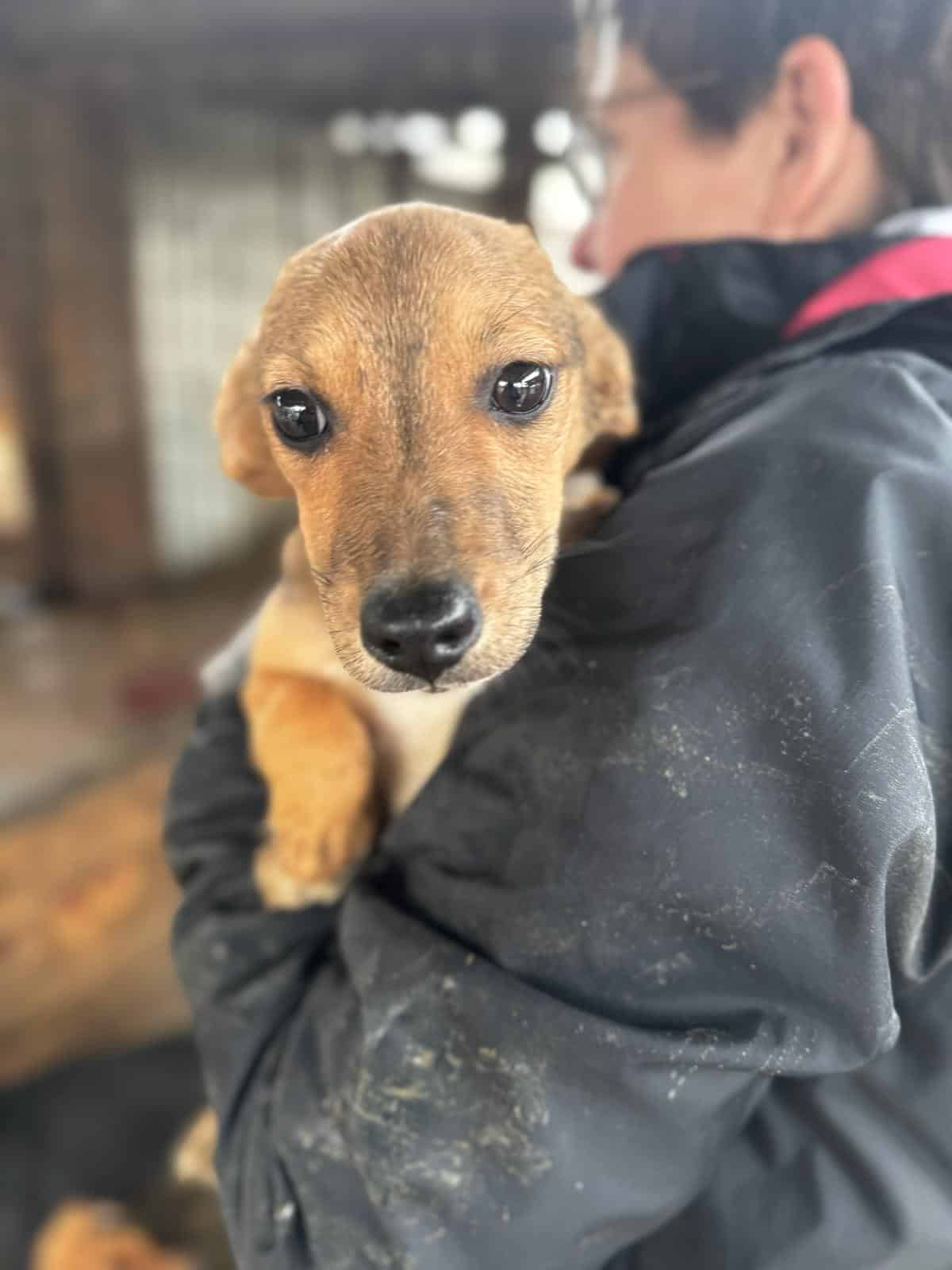 BECKY ist eine sehr kleine und sehr dünne Hündin. Sie sitzt zusammen mit Notfall Sanna in einem vollkommen überfüllten Welpenkennel. Dort muss die kleine Maus mit 15 weiteren Hunden, hauptsächlich Welpen, ums Überleben kämpfen. Da sie zusammen mit Sanna mit Abstand die Kleinste im Kennel ist, muss sie besonders viel aushalten und das sieht man der kleinen Hündin auch an. Sie ist absolut zu dünn und zudem auch vollkommen überfordert. Sie kommt nur sehr schwer ans Futter und wird von den anderen Welpen einfach über den Haufen gerannt. Damit sie nicht vollkommen unter die Räder kommt, zieht sie sich meist hinter die Hütten zurück und verpasst somit die meisten Fütterungszeiten.