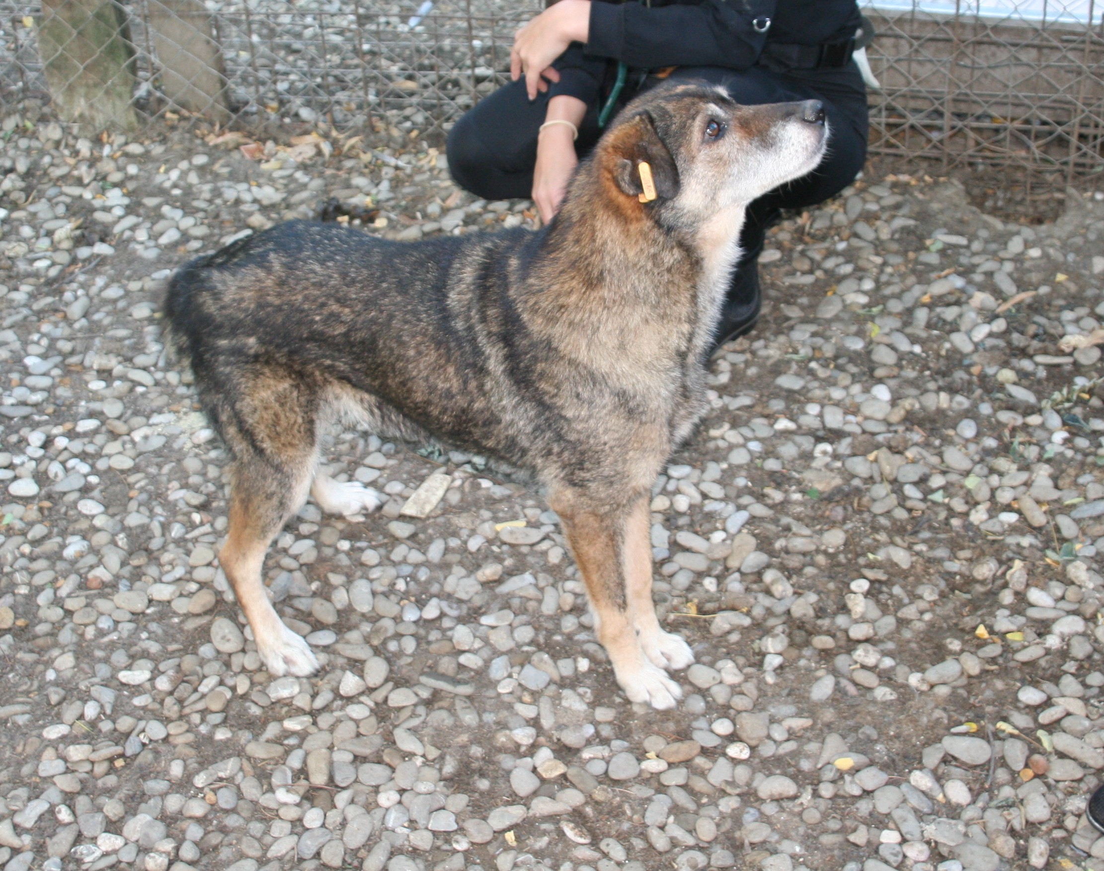 Zu Beginn war die freundliche Hündin noch etwas zurückhaltend, taute jedoch auf und suchte dann auch den Kontakt zu uns. Sie genoss dann vorsichtige Streicheleinheiten – bei schnellen Bewegungen zuckt sie noch zurück.