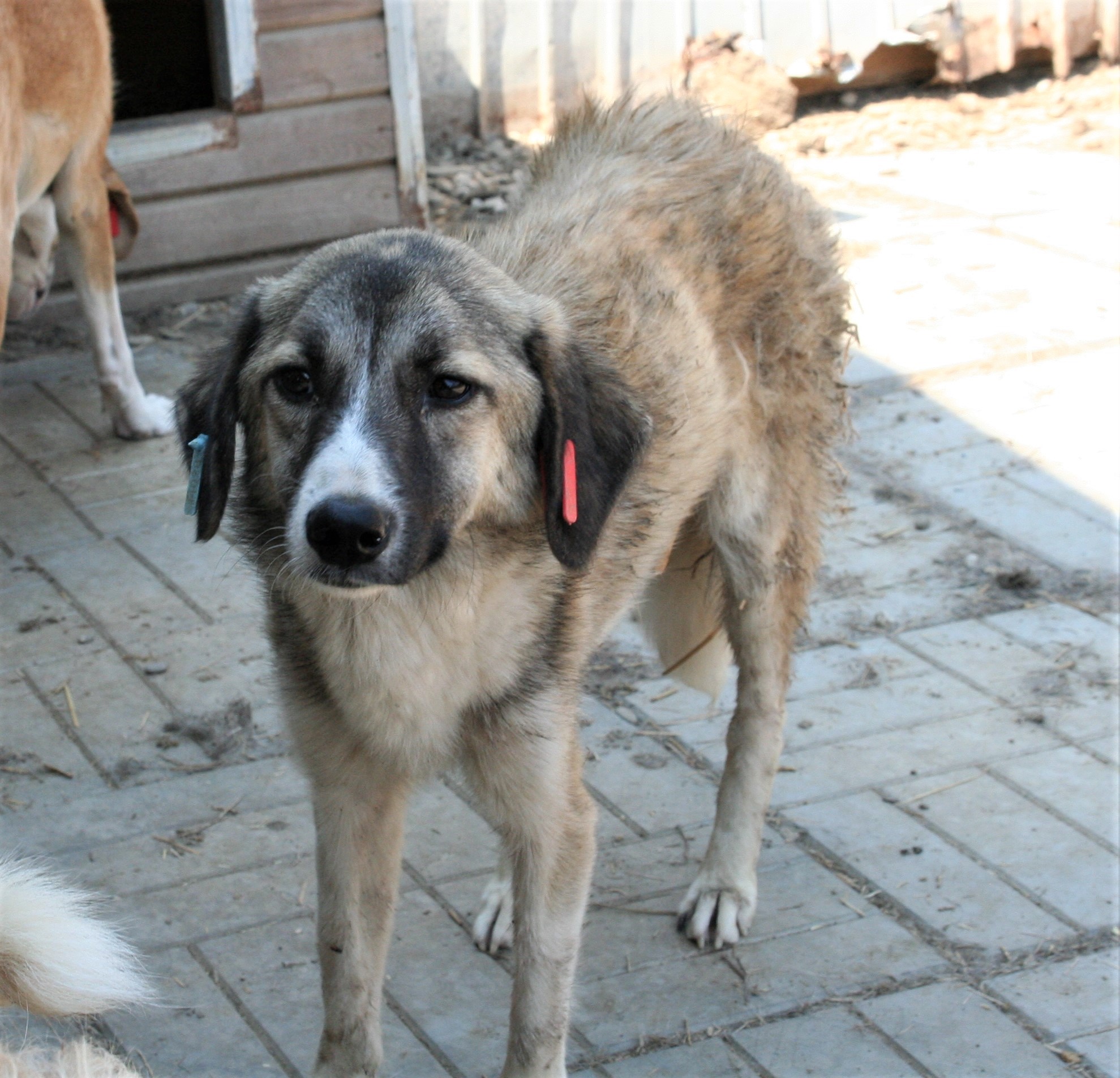 BEENA hat weiter abgenommen und ist besorgniserregend mager. Ihr ist der Trubel dort einfach zu viel, meist liegt sie in der Hütte. Trotz der umher springenden Hunde hat sie sich aber nach einiger Zeit herausgetraut, Kontakt und Schutz gesucht. Immer wieder wurde sie von anderen Hunden dabei fast umgerannt. Sie ist eine sehr nette Hündin, die dringend ausreisen sollte!