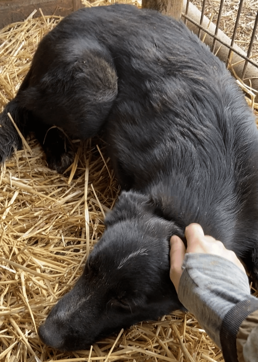 BEKE ist eine sehr liebe, ruhige Hündin, etwas stabiler gebaut (nicht dick!), die sich hinten anstellte und ganz lieb wartete, bis sie an der Reihe war. Eine eher ruhige, devote Hündin, die den kurzen Streichelmoment sehr genoss.