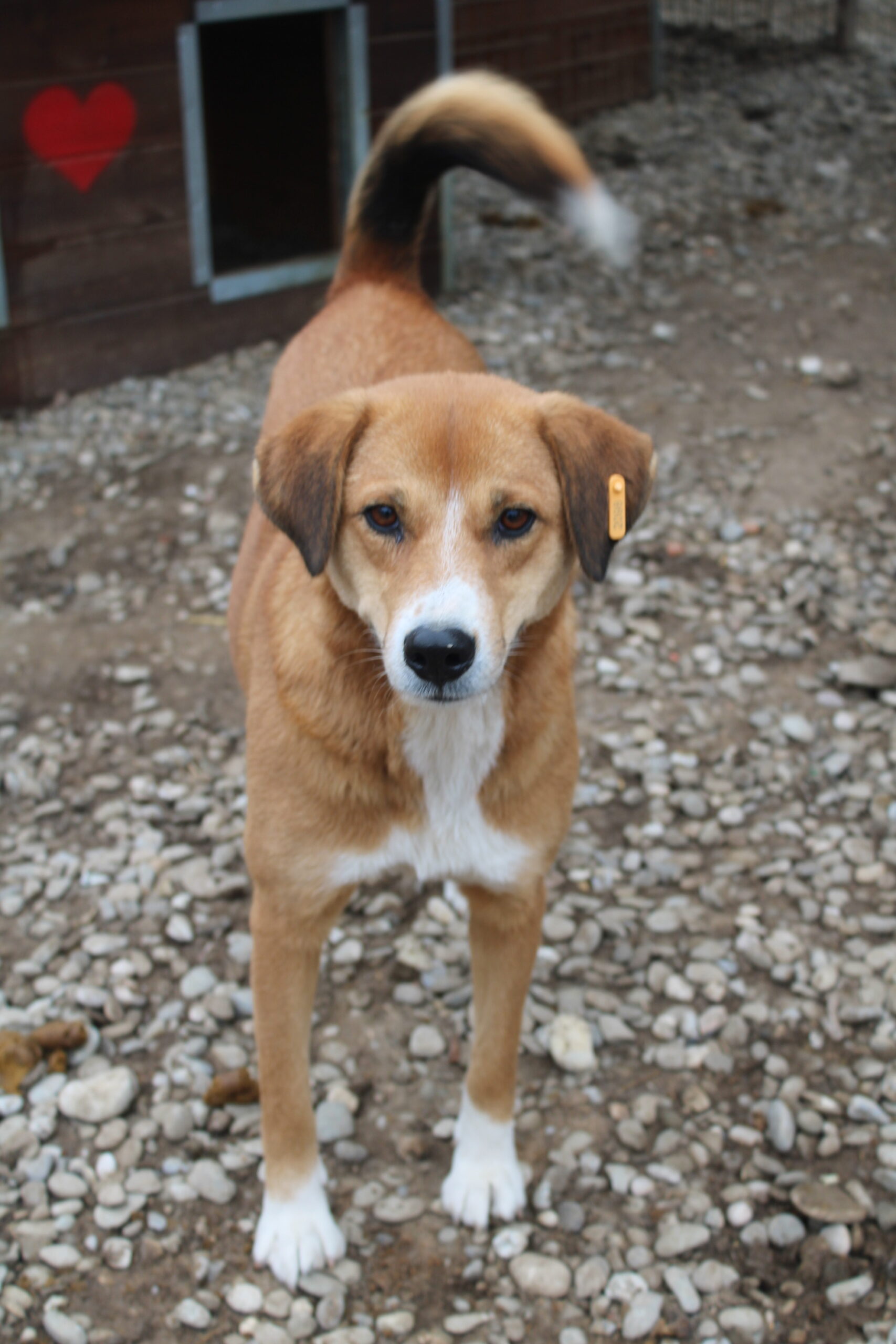 BELINDA nimmt Futter aus der Hand, ist aber weiterhin zu unsicher, um sich streicheln zu lassen. Von einem souveränen Ersthund würde sie sehr profitieren.