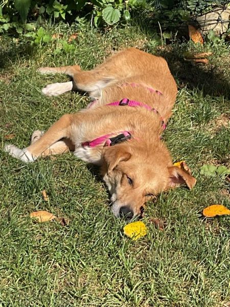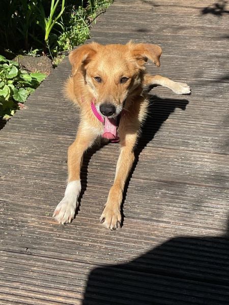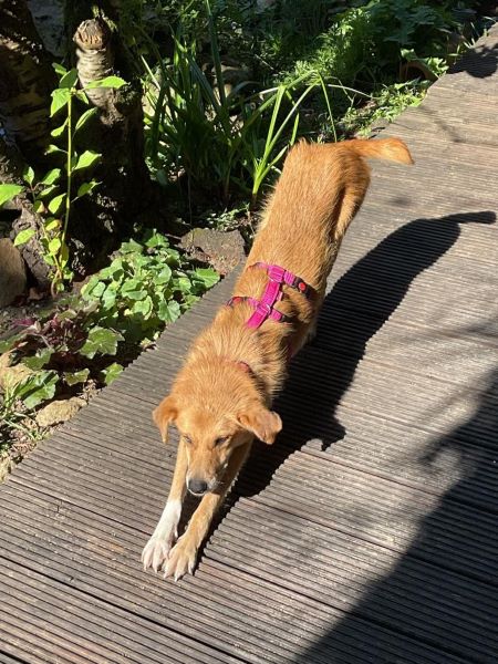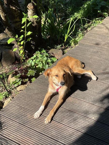 Anfangs war ich sehr skeptisch gegenüber Menschen, aber ich merkte schnell, dass ihr lieb seid und ich traute mich ganz fix Futter aus der Hand zu nehmen. Innerhalb weniger Tage (keine Woche) hatte ich keine Angst mehr bei mir vertrauten Personen. Fremden gegenüber bin ich noch zurückhaltend, deshalb wünsche ich mir Menschen, die mir die Zeit geben, die ich brauche um Vertrauen zu gewinnen. Ich bin eine lebenslustige kleine Zaubermaus, die sich gerne streicheln lässt und für Leckerli sehr empfänglich ist. Ein Ersthund wäre großartig, ich verstehe mich mit allen Hunden, egal, ob jung, alt, weiblich, männlich, klein und groß. Ich lebe hier in einem gemischten Rudel, in dem das alles kunterbunt vertreten ist, sehr harmonisch zusammen. Im Rudel bleibe ich auch allein und stelle nichts an. Ganz toll wäre ein Garten, da halte ich mich gerne auf und erledige dort auch zuverlässig meine Geschäfte. Die dort lebenden Hühner beobachte ich gerne, zeige aber keinerlei Jagdtrieb. Alltagsgeräusche beeindrucken mich nicht. Selbst vor dem Staubsauger habe ich keine Angst. Ich bin nicht schreckhaft, ich muss wirklich nur in Ruhe Vertrauen aufbauen dürfen, dann bin ich eine richtig tolle neugierige und liebe Begleiterin! Hast du Lust mich am Pfötchen zu nehmen und mir die Welt zu zeigen? Dann melde dich! Das Pflegefraule erzählt dir dann auch von meinen Fortschritten, denn ich lerne eifrig jeden Tag dazu!