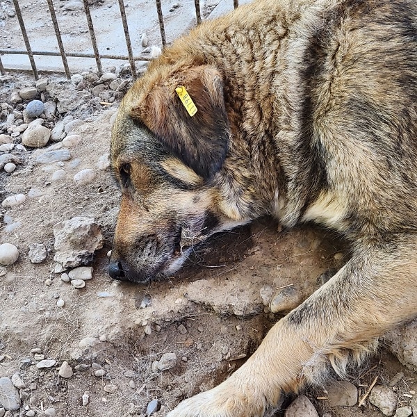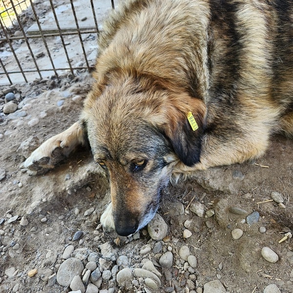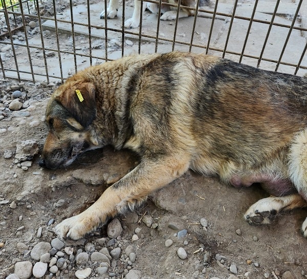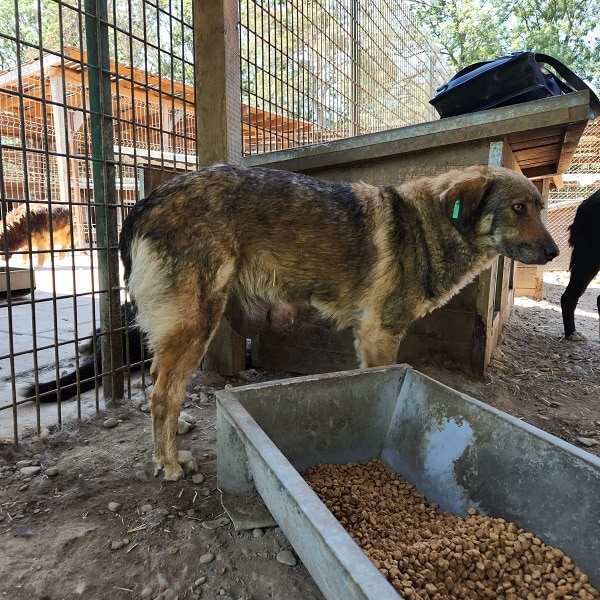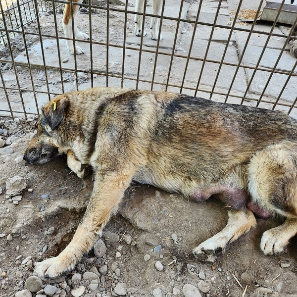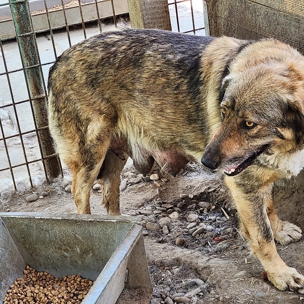 Dem extrem ausgeprägtem Gesäuge nach zu urteilen hat diese arme Hunde-Mama wohl erst vor Kurzem Welpen zur Welt gebracht, welche leider nicht mehr bei ihr waren. Da BELLA äußerst schwach, kränklich, apathisch und völlig fertig wirkte, absolut nicht an unseren Leckerchen interessiert war und auch generell kaum Reaktionen zeigte, haben wir sie direkt der Tierärztin gemeldet, die sie auch gleich behandelt hat. Wir hoffen, dass sich schnell erholt und bald seelisch und körperlich über den Verlust ihrer Welpen hinwegkommt. Ein ruhiges Zuhause würde sicher zu einer schnellen Genesung beitragen, stattdessen muss sie aktuell leider weiter im Shelter-Stress klarkommen.