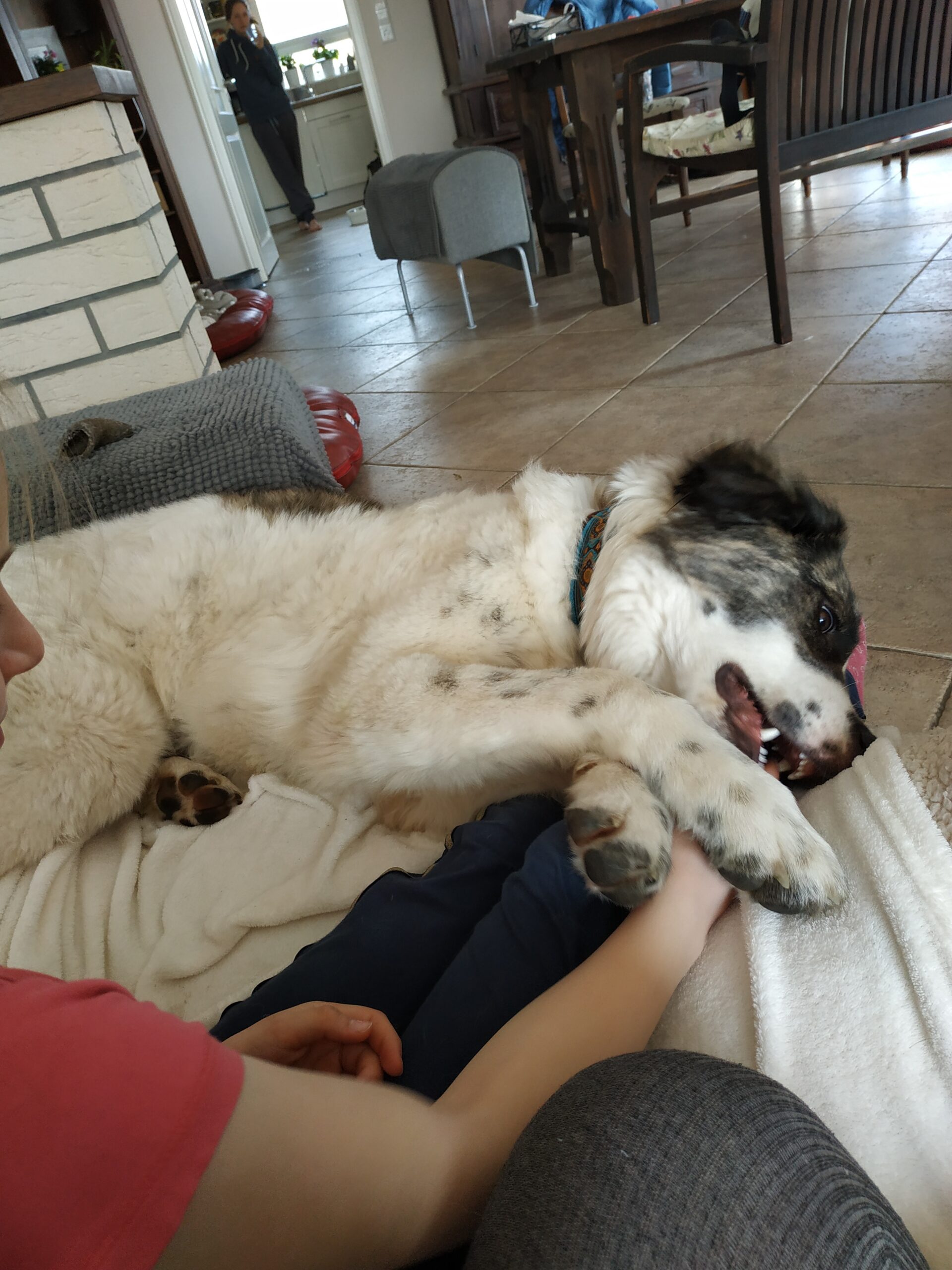 * Herdenschutz (Mix) * entwickelt Schutztrieb * von vertrauten Menschen gerne überall anfassbar * zutraulich, schmusig, freudig , verspielt, gelehrig, aufmerksam* katzenverträglich * hundeverträglich * stubenrein * Langschläfer * fährt problemlos und gerne im Auto mit * kann angemessene Zeit alleine bleiben * gerne als Zweithund, kommt aber auch gut alleine klar.