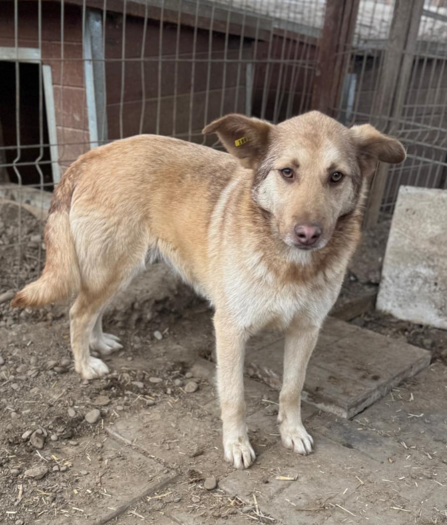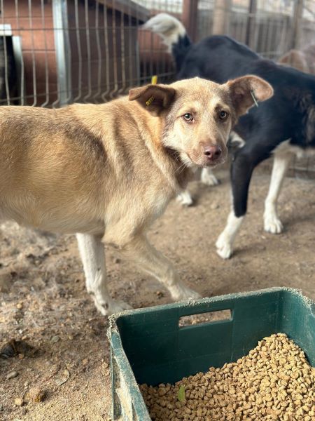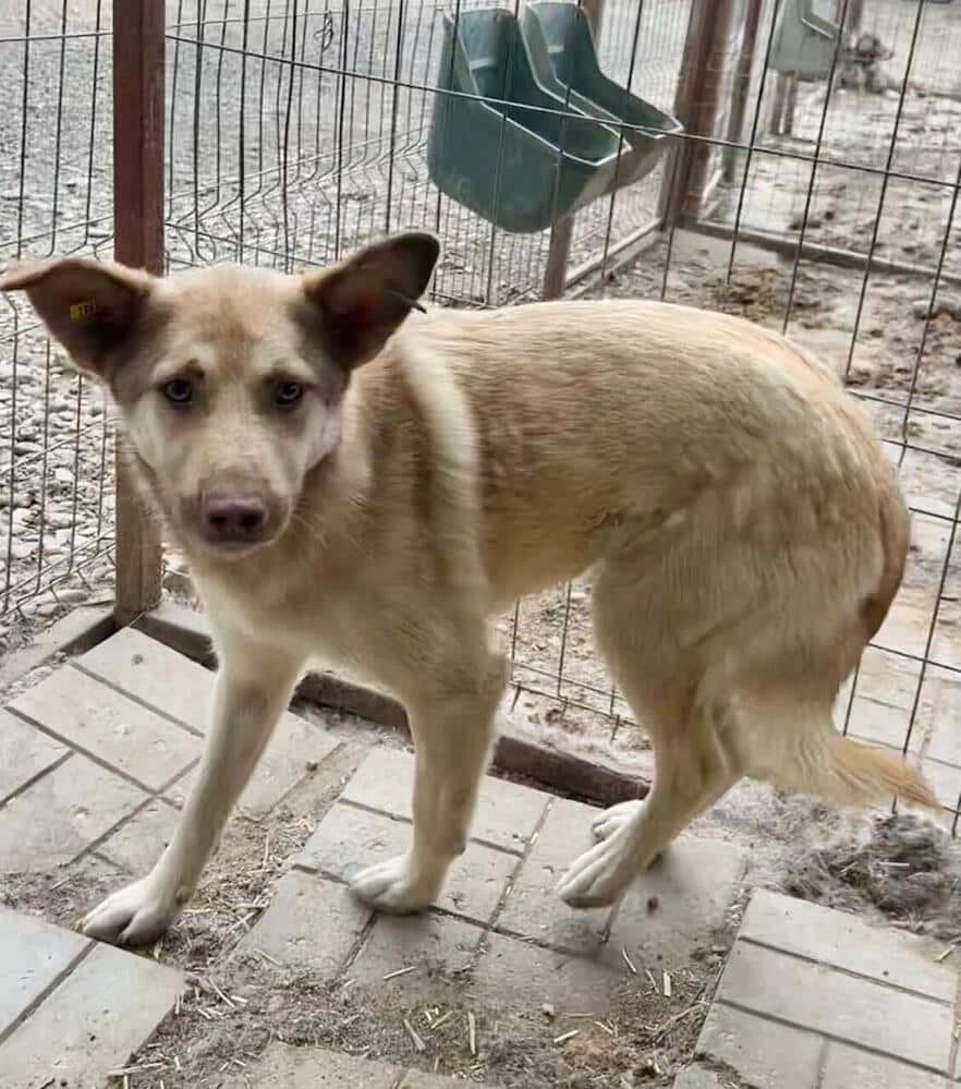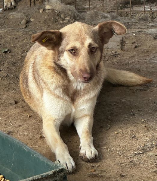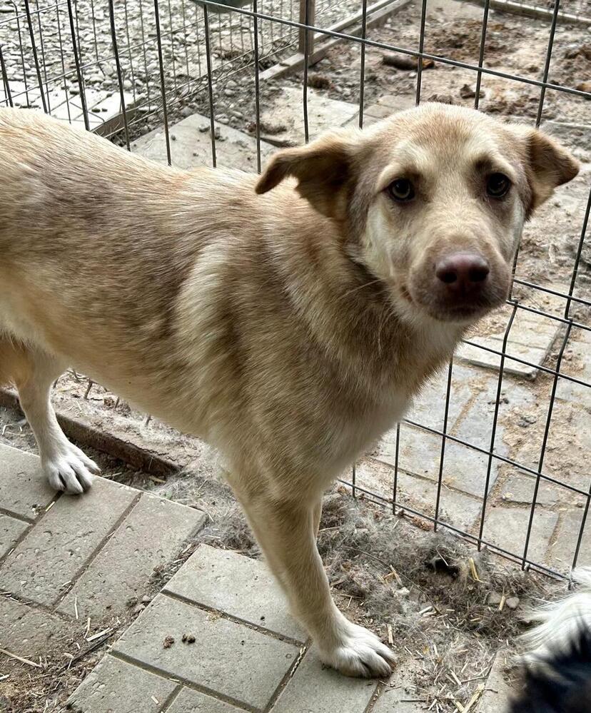 Diesmal trafen wir BELLADONNA draußen an. Sie zeigt sich weiterhin etwas scheu. Zweithund wäre ein Muss. Sie wirkt sehr verträglich. Anfassen konnten wir sie nicht und haben sie auch nicht bedrängt. Eine Verdickung am Sprunggelenk, die im Mai da war, konnten wir nicht mehr feststellen.
