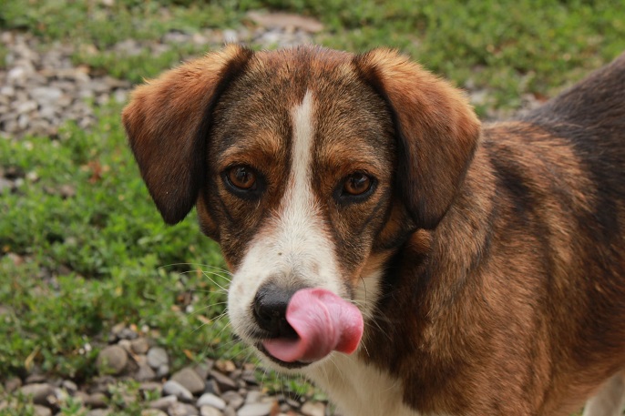 BELLIA holte sich auch bei diesem Besuch gern ihre Leckerchen ab und nahm sie aus der Hand. Mit ihren Hundekumpels ist sie verträglich.