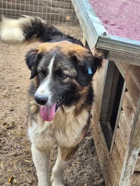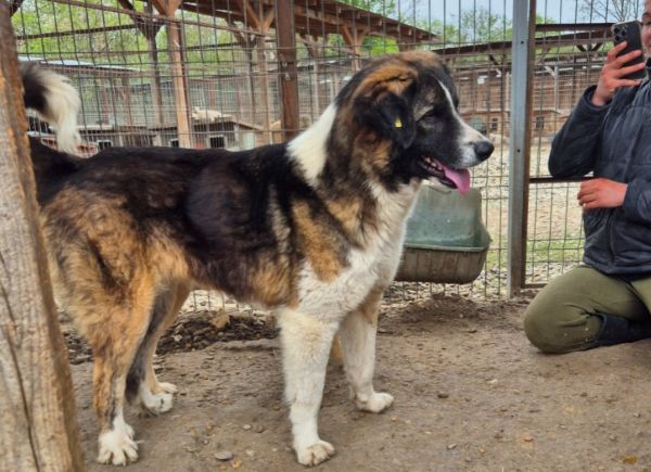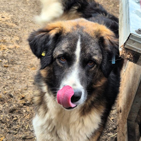 Während unseres Besuchs taute er immer weiter auf und blieb an unserer Seite. Anfassen konnten wir ihn nur an der Schnauze, aber wir sind zuversichtlich, dass der menschenbezogene Rüde in einer ruhigeren Umgebung sehr schnell auftauen könnte.