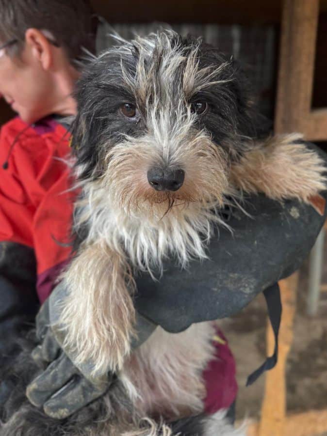 Der kleine Wuschel BENJO saß beim Betreten des Kennels in der Hütte. Dort konnten wir ihn problemlos heraus auf den Arm nehmen. Nachdem er merkte, dass wir es gut mit ihm mit meinten, war er aufgeschlossen, neugierig und ständig in unserer Nähe ohne aufdringlich zu sein.