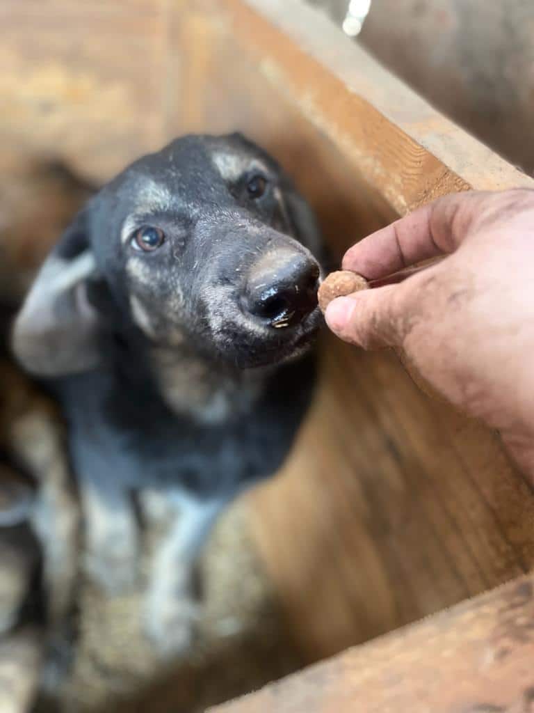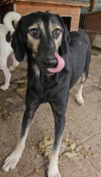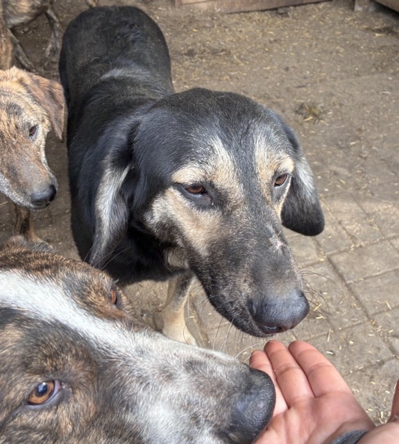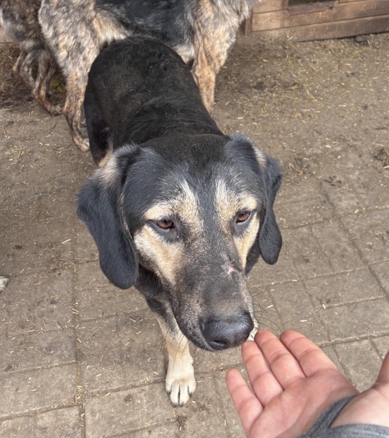 Unser süßer BENNE hofft nun seit 2 langen Jahren im Shelter auf sein Glück. Auch bei diesem Besuch war er sofort zur Stelle und kam mit den anderen Hunden immer wieder ganz nah heran, um uns zu beschnuppern. Die Freude über den seltenen Besuch war deutlich spürbar – ebenso wie BENNEs Interesse am Kontakt zu uns. Behutsam konnten wir ihn an der Schnute berühren, er nahm gern die Leckerlie und in der sicheren Hütte ließ er sich ohne Gegenwehr auch am Körper streicheln. BENNE fehlt einfach die Routine und Erfahrung im direkten Umgang mit uns und wir sind uns sicher, dass er in einer stressfreien Umgebung rasch auftauen und Fortschritte machen wird. Für BENNE suchen wir einfühlsame Menschen, die ihn an ein Zusammenleben auf der Sonnenseite heranführen. Seine offene und freundliche Art sowie seine Vorliebe für Leckereien werden ihm dabei helfen, Vertrauen aufzubauen. Ein netter Ersthund wäre ebenfalls eine große Stütze, da er sich im Rudel sicherer und mutiger fühlt. Wir wünschen ihm diese Chance sehr.