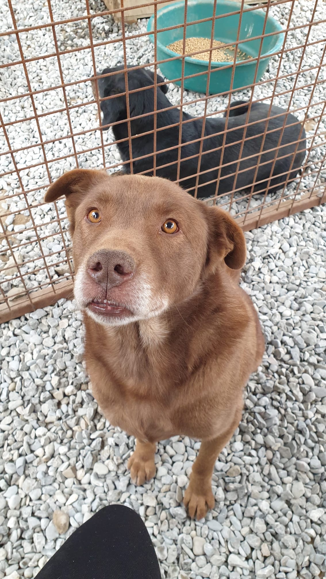 BENNO machte brav „Sitz“, bedrängte uns in keiner Weise und sprang auch nicht wild an uns hoch. Wenn er sich freut, kann er die Leftzen hochziehen, so dass es wie ein Grinsen aussieht. Uns gegenüber zeigte er sich sehr nett und unaufgeregt. BENNO sitzt derzeit alleine in einem Kennel, wir vermuten, dass er unverträglich ist. Neben ihm sitzt ebenfalls ein großer Rüde, Pöbeleien durchs Gitter konnten wir keine beobachten.