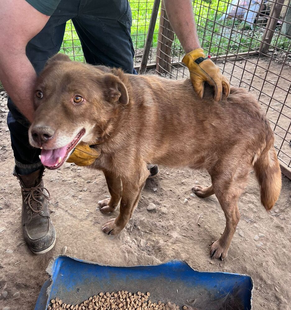 BENNO ist eine imposante Erscheinung. Ein wunderschöner, kräftig gebauter Rüde, der sicher mal ein Zuhause hatte. Er ließ sich gut von uns streicheln und wartete höflich, wenn wir ihm Leckerlis geben wollten.