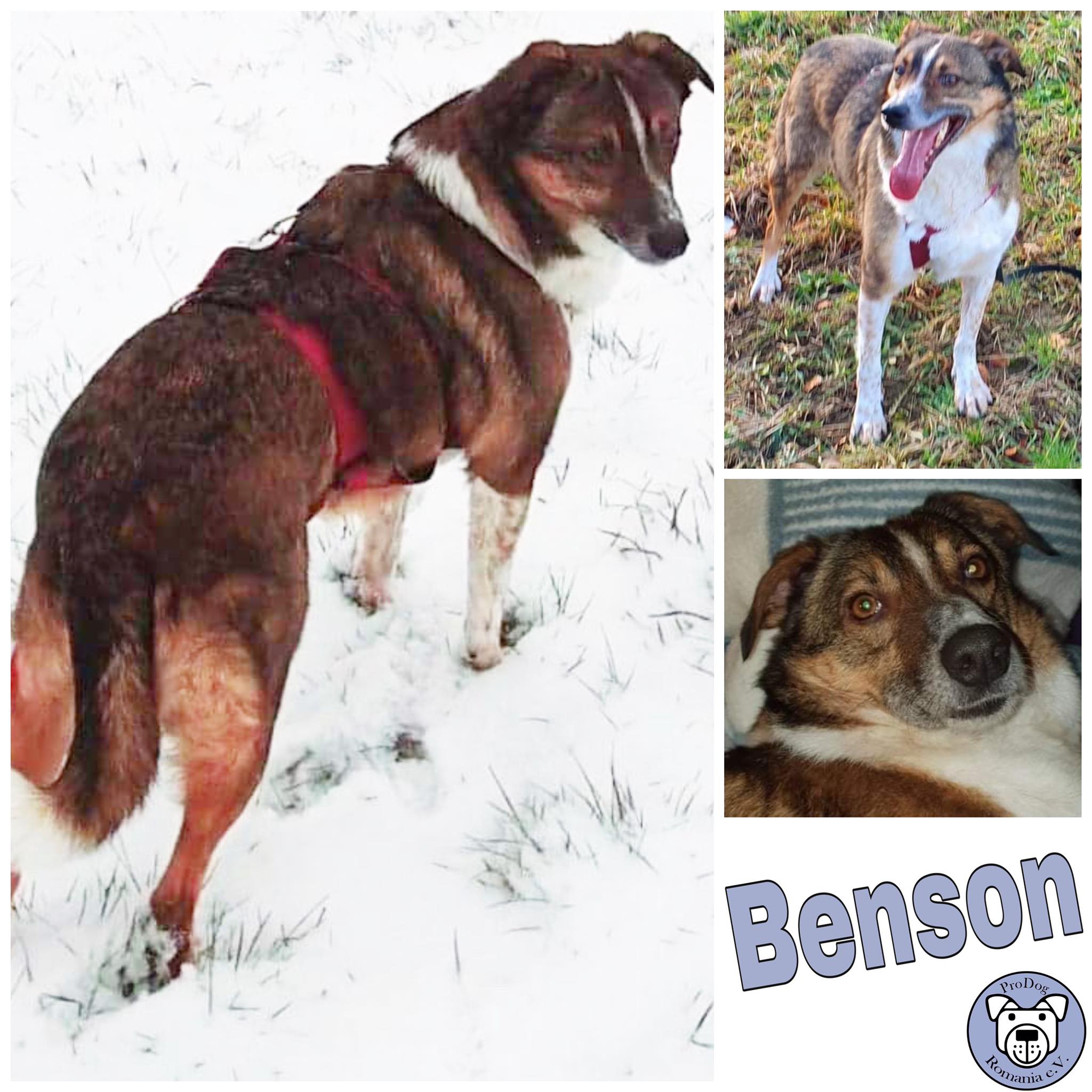 Benson befindet sich seit Anfang Januar 2021 auf einer Pflegestelle in 58256 Ennepetal und wartet auf sein Für-Immer-Zuhause Der liebe Junge saß seit Welpe an, mindestens 3,5 Jahre, im Shelter in Rumänien. Drei eiskalte Winter, der vierte Winter schon angefangen, auf ein paar Quadratmeter und kannte nichts! Dann, als hätte er nie was anderes gemacht, stieg er bei mir Zuhause aus der Box und inspizierte erst mal alles. Drei Tage später, nachdem wir ein bisschen geübt haben, Geschirr anlegen, an der Leine gehen, sind wir raus zur ersten Gassirunde. Wiederum zwei Tage später ging Benson an der Leine, als hätte er nie was anderes gemacht. Nach einer Woche war er stubenrein und freut sich nun seines Lebens. Im Schnelldurchgang wird alles nachgeholt. Er lebt hier mit weiteren 2 Hunden, 2 Katzen, meinem 13jährigen Sohn und meiner Wenigkeit. Auch mit fremden Hunden ist er total verträglich. Er hat ein total liebes Wesen und ist zu keinem, ob groß oder klein, Männlein oder Weiblein, in irgendeiner Weise auffällig. Allerdings möchte er auch von morgens bis abends beschmußt werden. Ein bisschen Schreckhaft ist er noch bei ruckartigen Bewegungen oder knallartigen Geräuschen, aber draußen schon sehr souverän gegenüber anfallenden Begegnungen, wie Jogger, Fahrradfahrer Autos und natürlich dem Fußvolk. Es wird von Tag zu Tag besser. Benson sollte aber nicht unbedingt zu kleinen Kinder, da ich denke, dass es da zu viel Trubel für ihn ist, momentan auf jeden Fall noch. Grössere Kinder kein Problem. Ein schon vorhandener Hund wäre auch schön, aber kein Muss, er sollte aber zumindest ausreichend soziale Kontakte haben. Und nun würde Benson sich freuen, sein Für-Immer-Zuhause bald zu finden. Nach positiver Vorkontrolle steht dem nichts mehr im Wege. Der vermittelnde Verein ist Prodogromania. Kontakt unter xxx