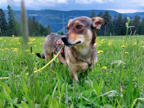 Sie kann ‚Sitz“, „Platz“, gibt begeistert Pfötchen und ist gut abrufbar. BENTE lernt gerne weiter dazu und freut sich über positive Bestärkung.