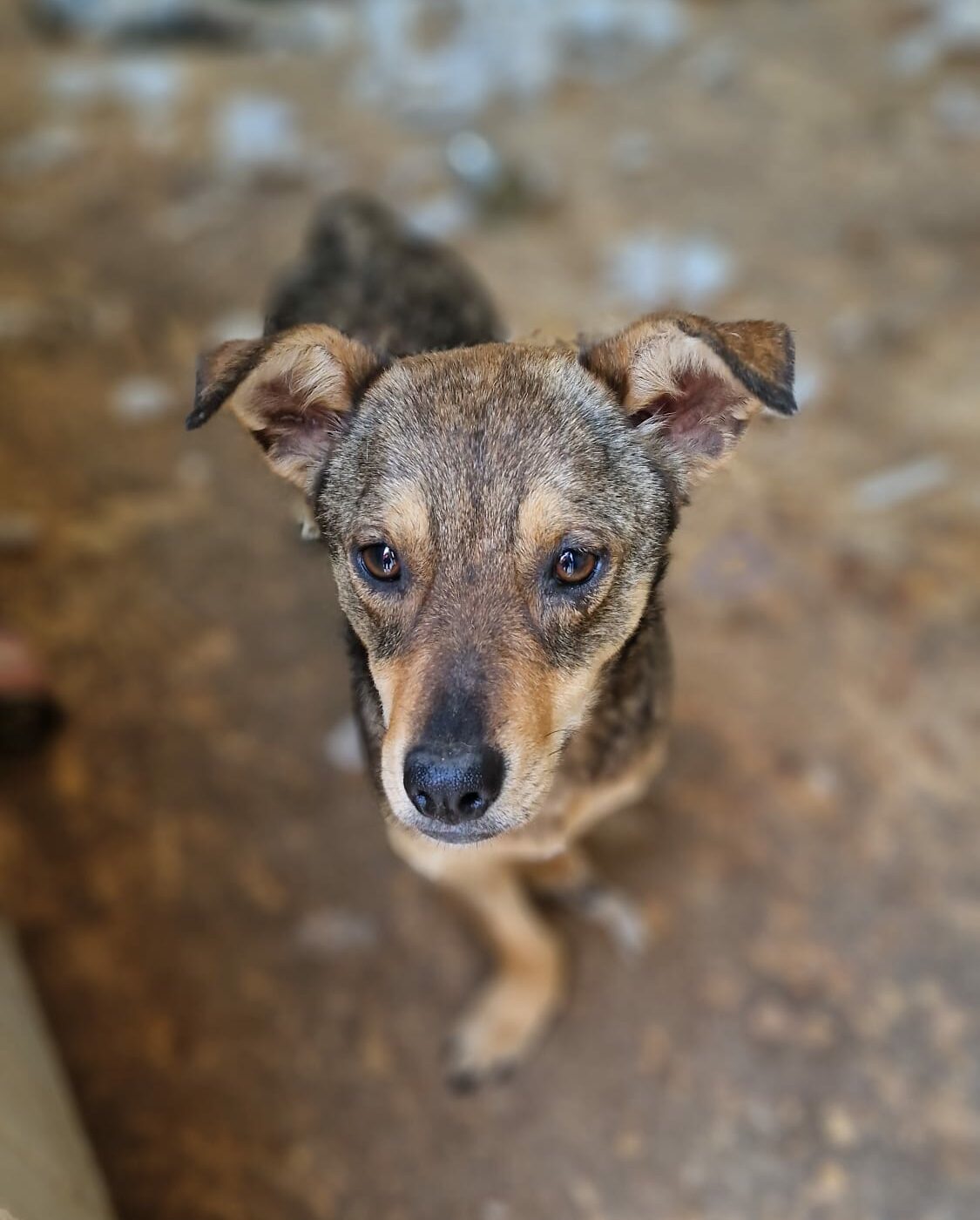 - sie ist überfordert, ließ sich aber vorsichtig an der Schnauze berühren. Mit Erfahrung, Zeit und Verständnis taut sie sicher noch auf. In der Situation dort ließ sie sich nicht streicheln