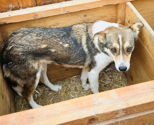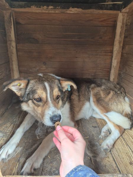 Eine wunderschöne, aber auch noch schüchterne Hündin, die überrascht war, dass wir etwas von ihr wollten, wo sie sich doch so schön in ihre Hütte zurückgezogen hatte. Viel können wir noch nicht zu ihr sagen, ausser das sie in der Hütte gestreichelt werden konnte. Eine andere Umgebung würde ihr schon viel helfen und erfahrene und geduldige Menschen, die ihr Schritt für Schritt die Sorgen nehmen.