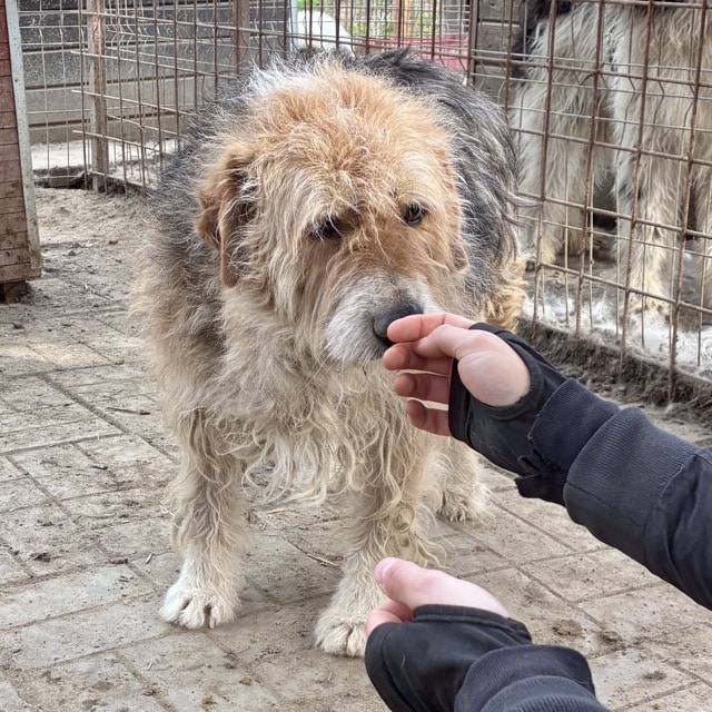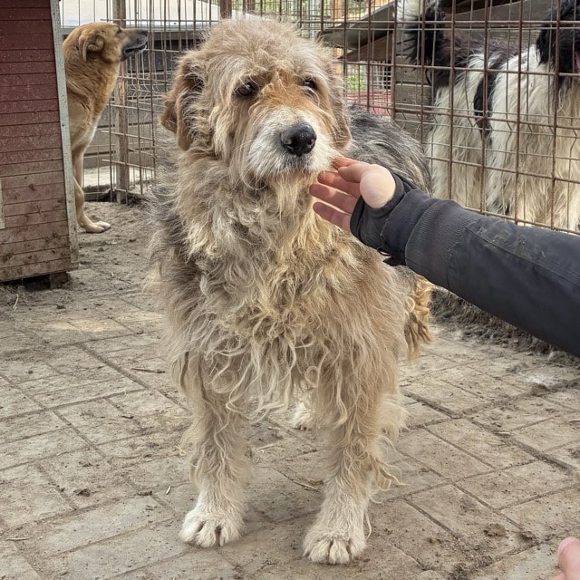 Unser süßer BERNADETTO hofft nun seit mehr als 2 Jahren vergeblich im riesigen Shelter auf sein Glück. Diese lange Zeit in Isolation hat ihre Spuren hinterlassen: sein einst so tolles Fell ist stark verfilzt und uns Menschen gegenüber zeigte BERNADETTO sich zunächst etwas verhalten. Sein ruhiges und besonnenes Wesen hat der sanfte Senior sich bewahrt, machte auf uns jedoch auch einen resignierten Eindruck. Als hätte er die Hoffnung auf ein schönes Leben aufgegeben. BERNADETTO brauchte einige Minuten, dann kam er zögerlich bis zu unseren Händen und schnupperte daran. Die mitgebrachten Leckerlie nahm er vorsichtig an und ließ sich dabei auch behutsam an der Schnute berühren. Für mehr Nähe fehlt BERNADETTO das Vertrauen und die Erfahrung im direkten Umgang mit uns. Wir denken, dass er in einer stressfreien Umgebung bei verständigen Menschen rasch Fortschritte machen und auftauen wird. Mit seinen Artgenossen ist er verträglich, sodass ihm ein netter Ersthund die Eingewöhnung sicher zusätzlich erleichtern würde. Wir wünschen BERNADETTO, dass er nun endlich gesehen wird.