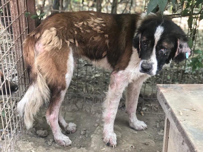 Rüde geb. ca. 2013 Größe: ca. 75cm Bernhardiner Hautprobleme, zu dünn, Probleme mit einem Auge