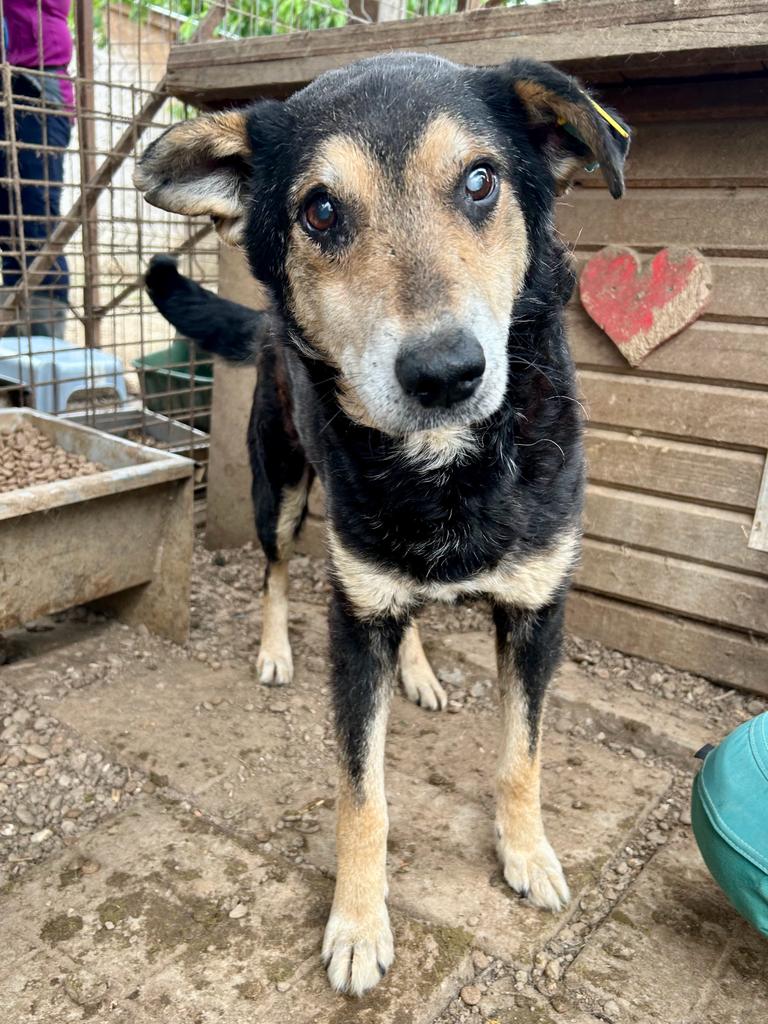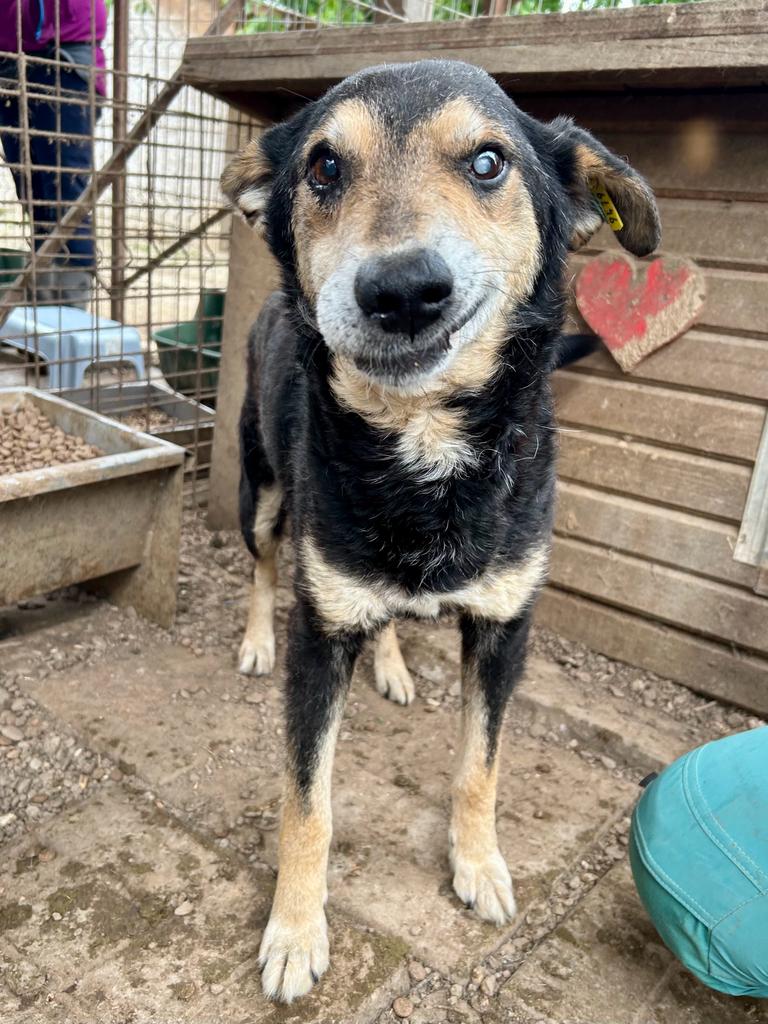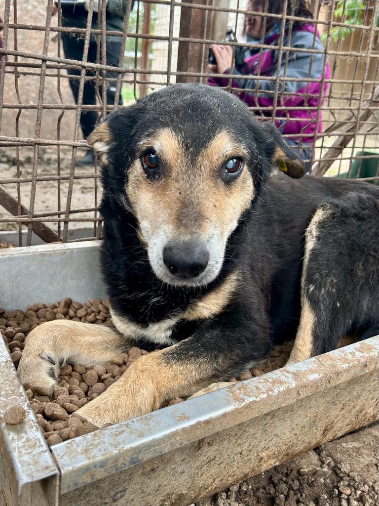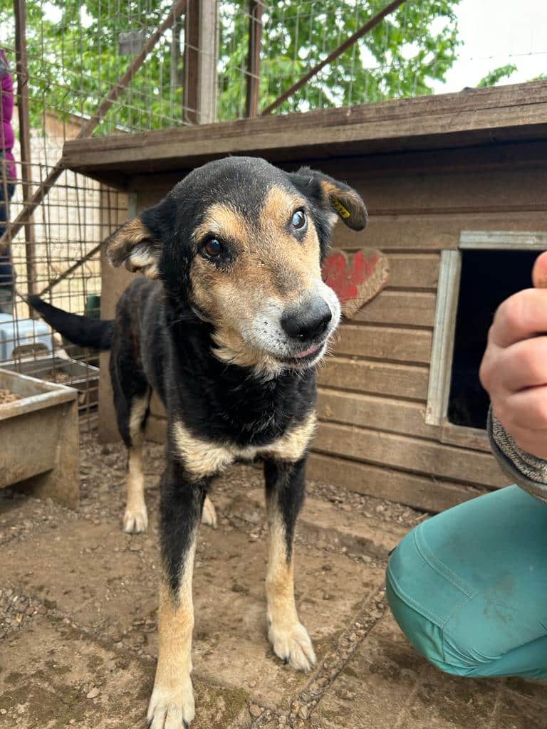 BERNY ist ein sehr freundlicher Opi. Er war bei unserem Besuch noch neu in Bucov, mit seiner Situation noch sehr überfordert und viel zu dünn, zeigte sich aber nie panisch, sondern nur zurückhaltend und nahm auch schon Futter aus der Hand. Im Kennel wollte er sich noch nicht streicheln lassen – da wich er zurück, in der Hütte konnten wir ihn aber ohne Probleme anfassen. Viel Trubel braucht BERNY in seinem neuen Zuhause nicht unbedingt, er sucht eine ruhige und entspannte Familie, die ihm zeigt wie schön das Leben noch sein kann. BERNY zeigte sich mit anderen Hunden verträglich.
