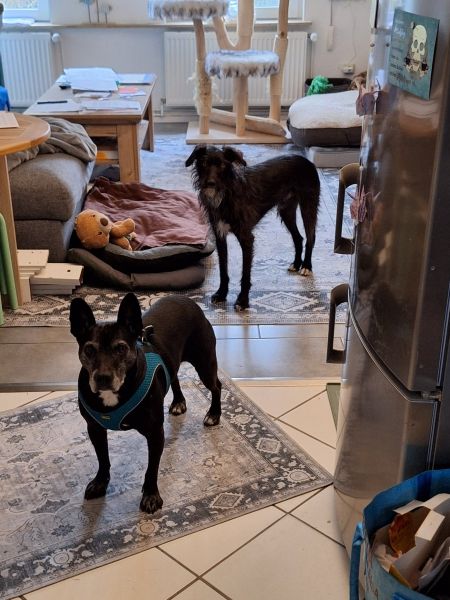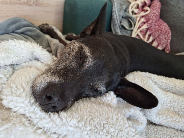 Bertha kann allein bleiben, ist stubenrein und schläft gern lang. Sie läuft gut an der Leine und zieht nicht. Auf mich hört sie recht gut. Holt ihr Leckerli ab und möchte gleich wieder los. Das ist auch noch ausbaufähig. Sie ist bei mir gerade nur am Lernen. Das klappt aber recht gut. Man muss nur konsequent bleiben. Sie nutzt Nachlässigkeit sofort aus…