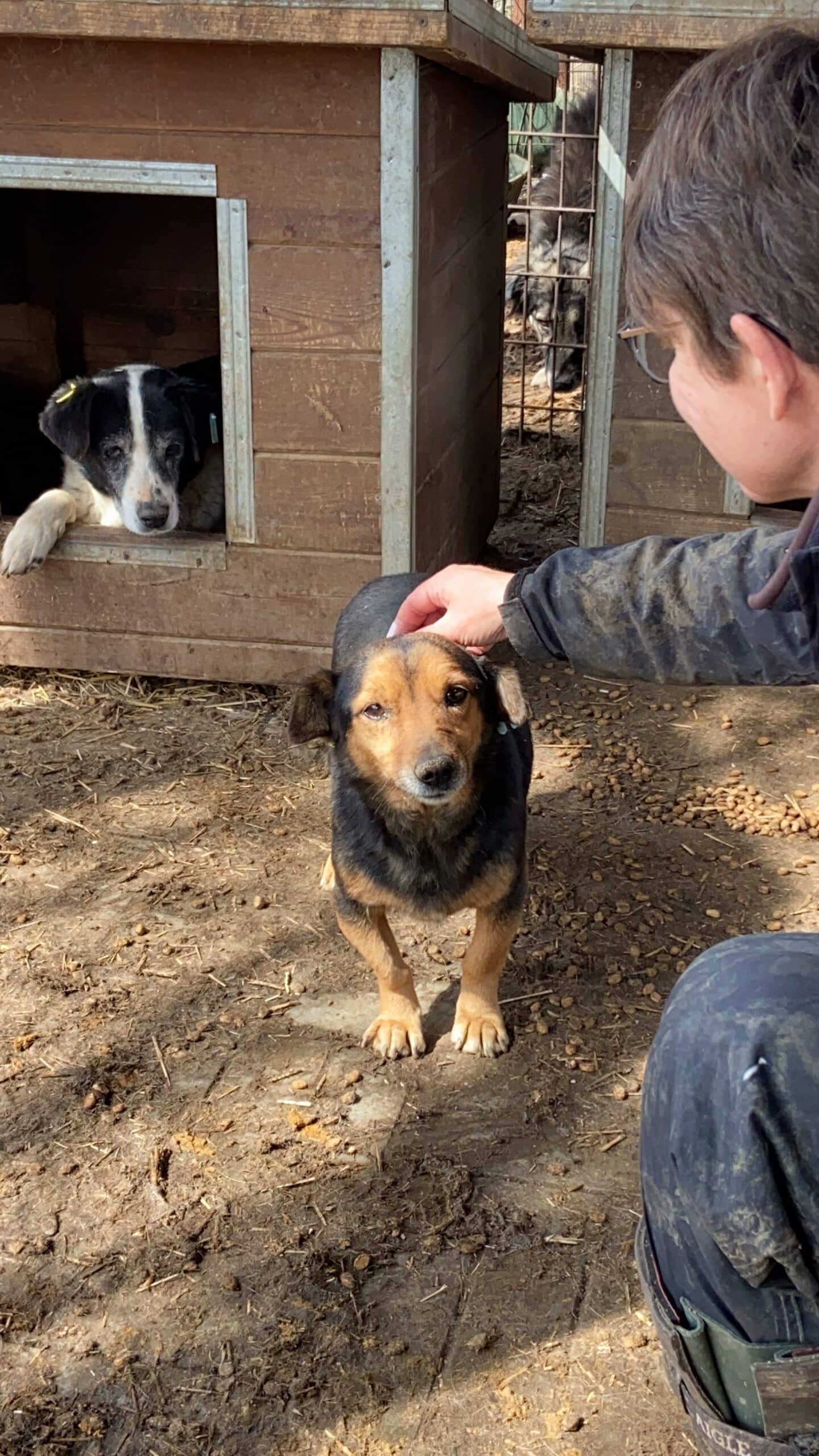Der kleine BERTI ist ein ganz mutiger Kerl. Als wir den Kennel betraten, verkroch er sich zunächst in einer Hütte. Doch als wir ihm Leckerlie reichten, traute er sich schnell heraus und wurde von Minute zu Minute mutiger, nahm die Leckerlie wie ein Großer direkt aus der Hand und ließ sich dann sogar problemlos überall streicheln. BERTI wirkte dabei insgesamt etwas zurückhaltend, Wir sind uns sehr sicher, dass er in einem ruhigen Zuhause schnell auftauen wird und sich dann auch komplett entspannen kann.