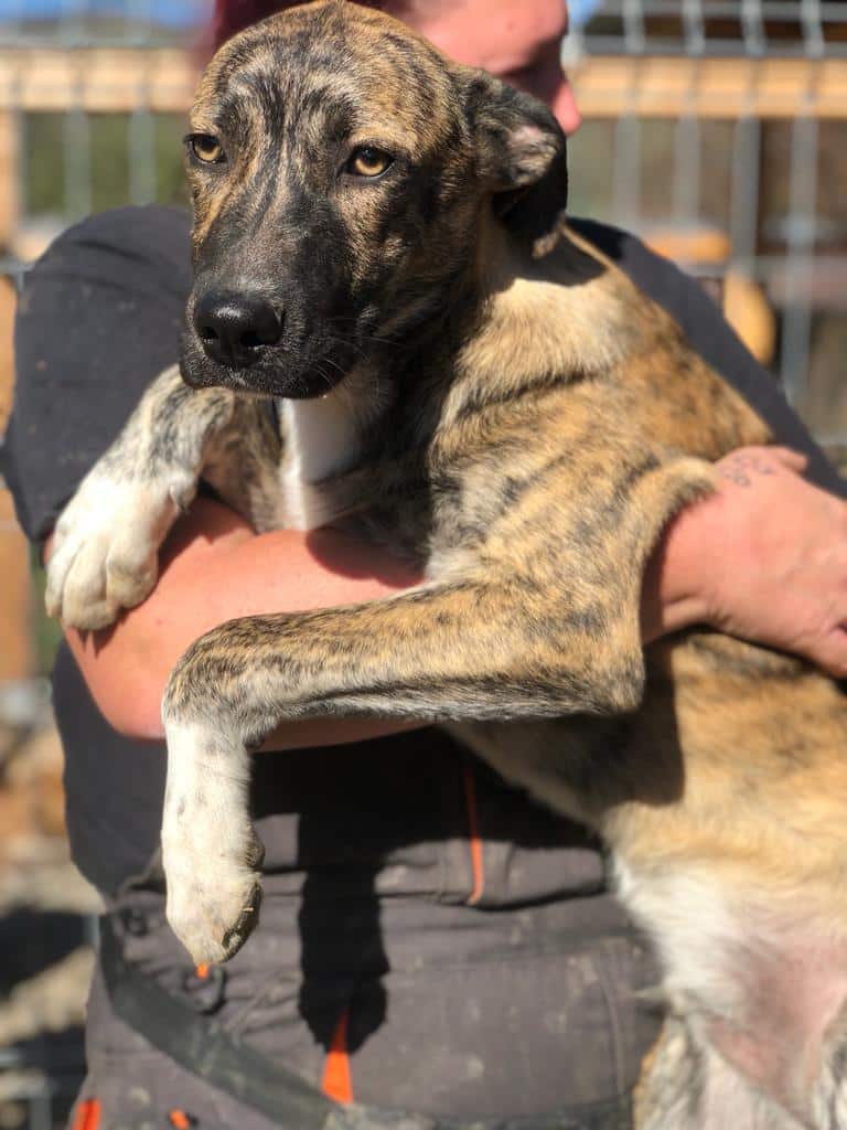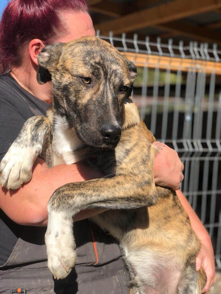 Eine ausdrucksstarke Erscheinung hat dieser besonders schöne, gestromte Jungrüde. Er zeigte sich uns gegenüber super offen, freundlich und neugierig. Auch in der großen Hundegruppe zeigte er sich sehr verträglich. Gerne lässt er sich überall anfassen. Ein ganz toller Familienhund.