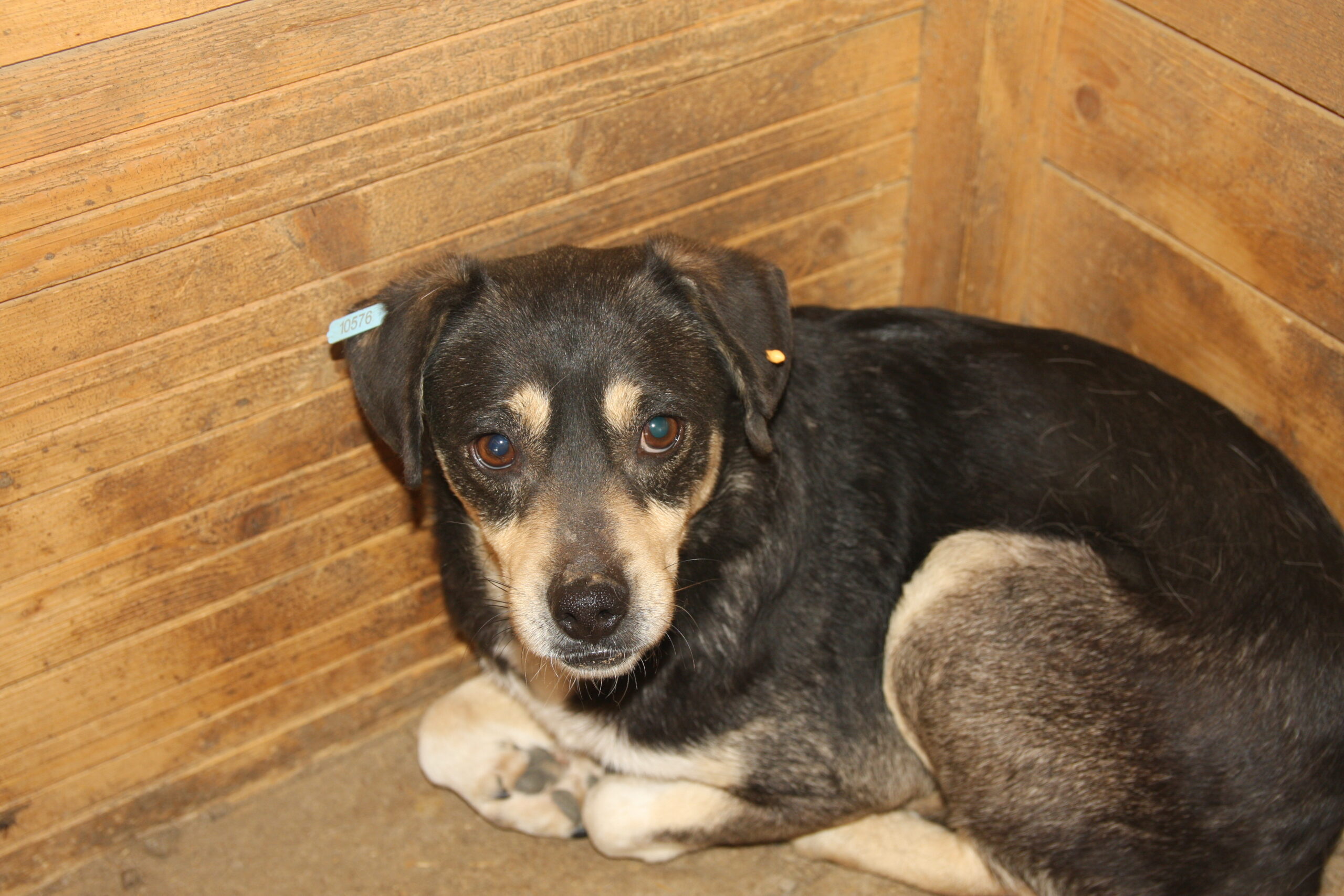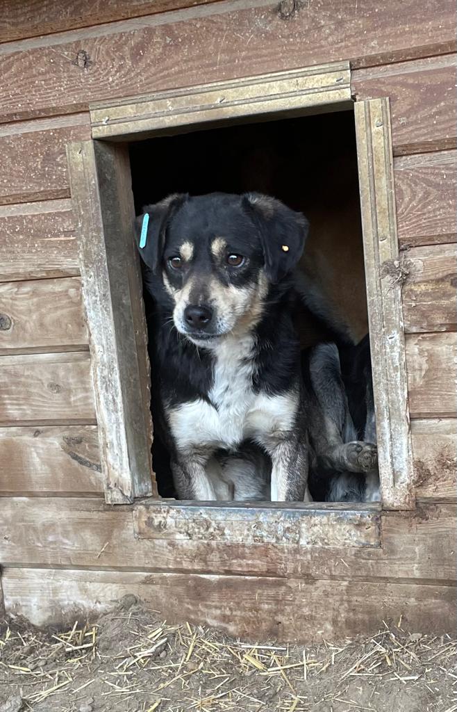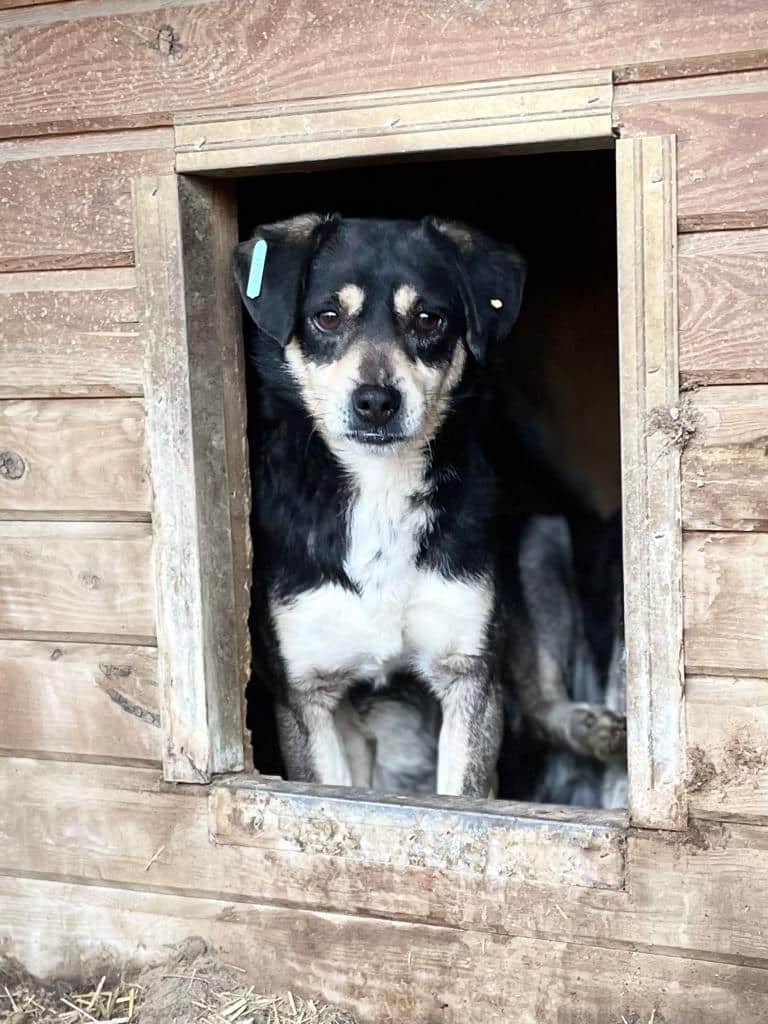 BESSY, lang galt sie als vermisst, nun wurde sie in einem anderen Kennel wieder gefunden. Sie war als einzige im Kennel neugierig und hat geschaut was wir so machen. Sie nahm die Leckerchen schon vom Hüttenrand, als der Finger noch am Leckerchen war. Zum anfassen lassen fehlte ihr der Mut.
