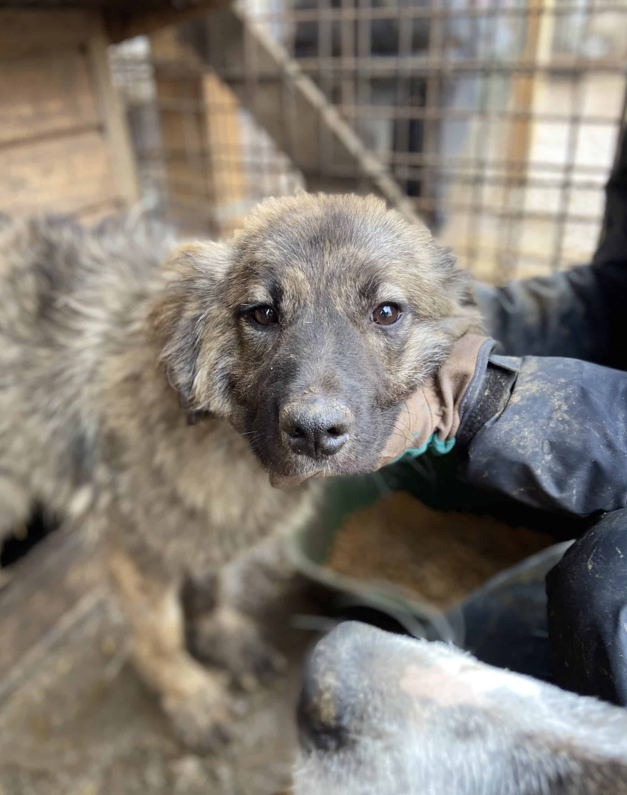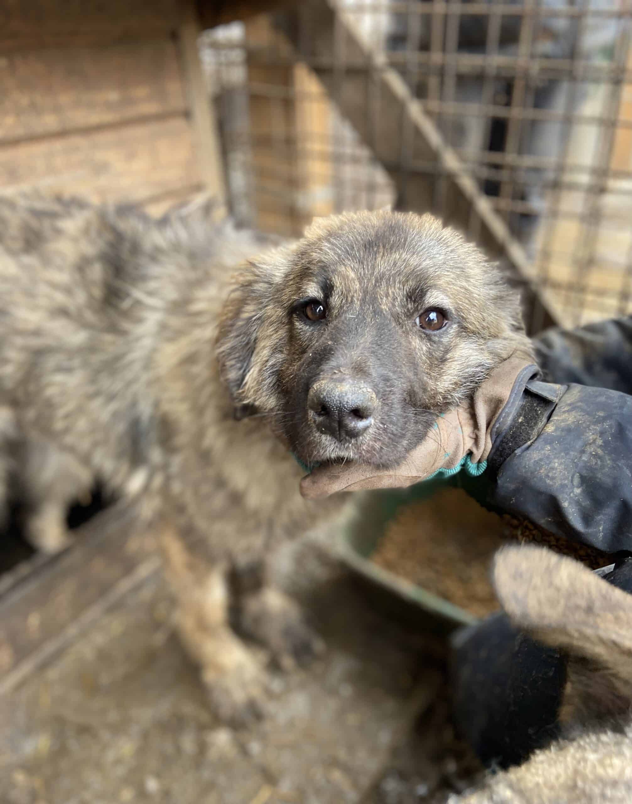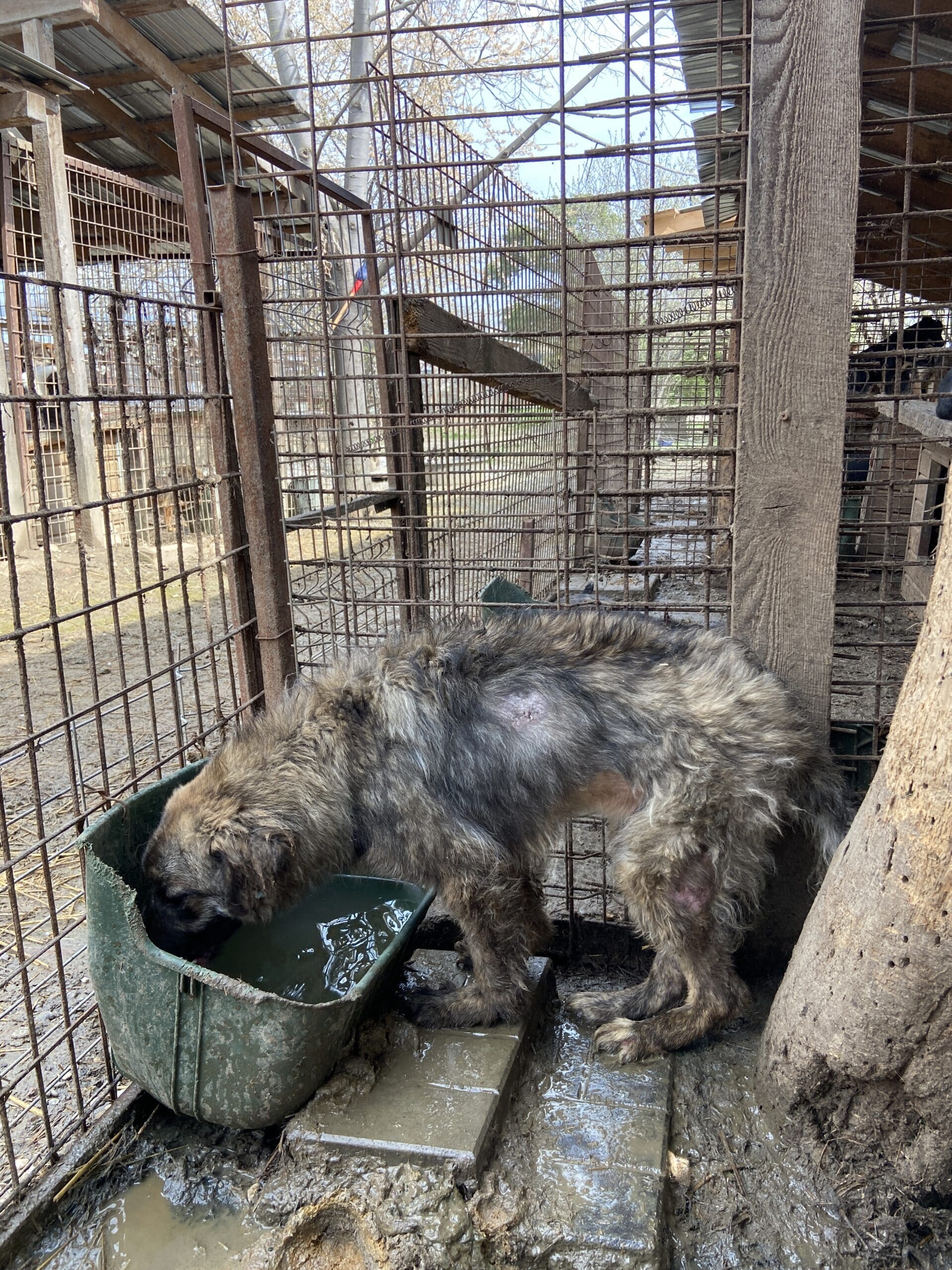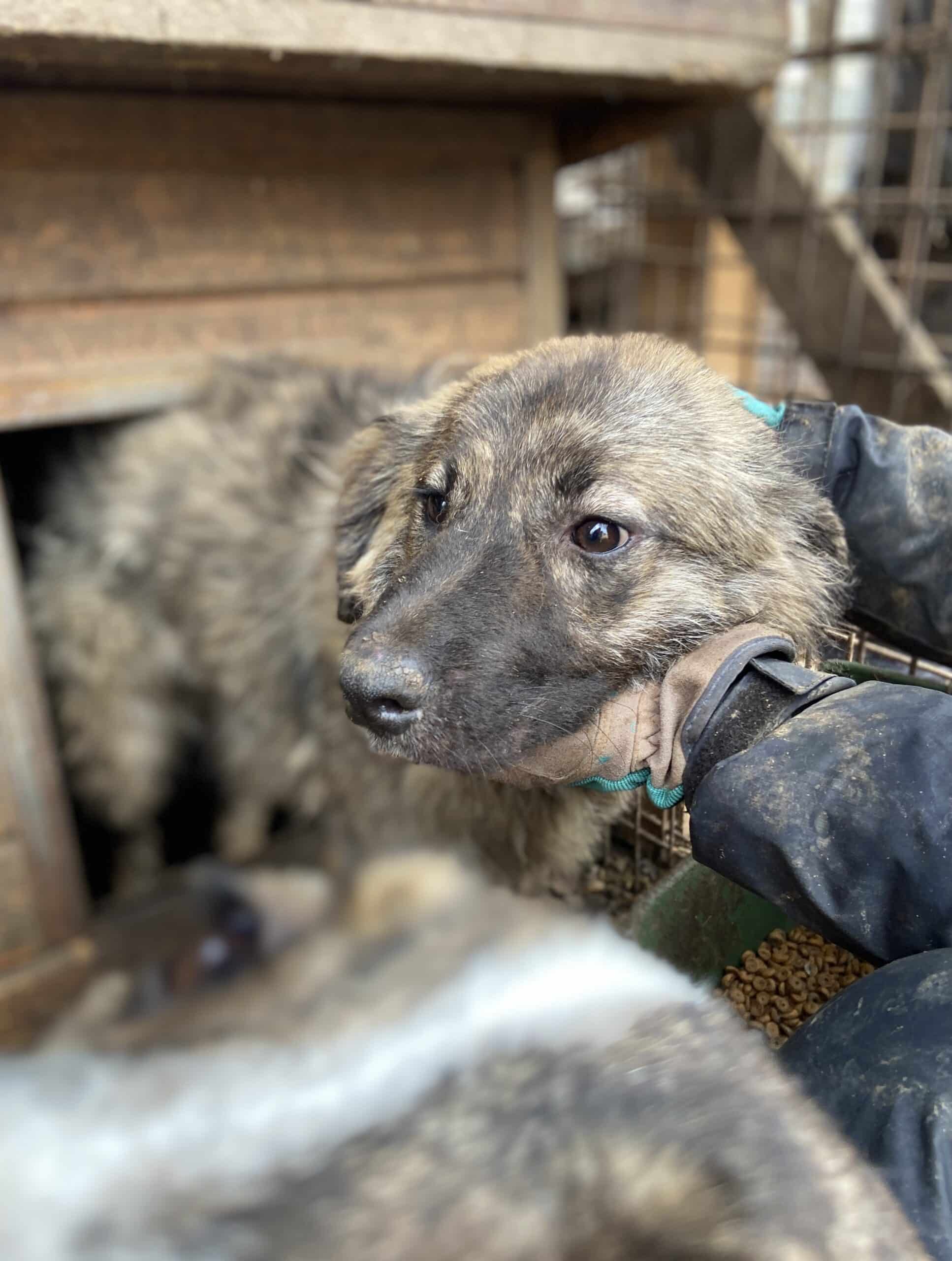 Die zarte BETSIE schlief während der ersten halben Stunde, die wir in ihrem Kennel mit den anderen Hunden verbracht haben in einer Hütte und ließ sich gar nicht stören. Dann stand sie auf und kam vorsichtig auf ihren instabilen, stark durchtrittigen Pfoten aus der Hütte getapst und begrüßte uns freundlich. Erst als sie die Hütte ganz verließ, konnten wir ihren erschreckend schlechten körperlichen Zustand beurteilen. Sie ist etwas dünn und hat stellenweise Hautprobleme entwickelt und Fell verloren. Nach Rücksprache mit der Tierschützerin vor Ort erfuhren wir, dass sie als Welpe an Staupe erkrankt war. Diese junge Hündin sollte dringend reisen, damit sich ihr gebrechlicher Körper endlich in einem warmen Körbchen erholen kann.