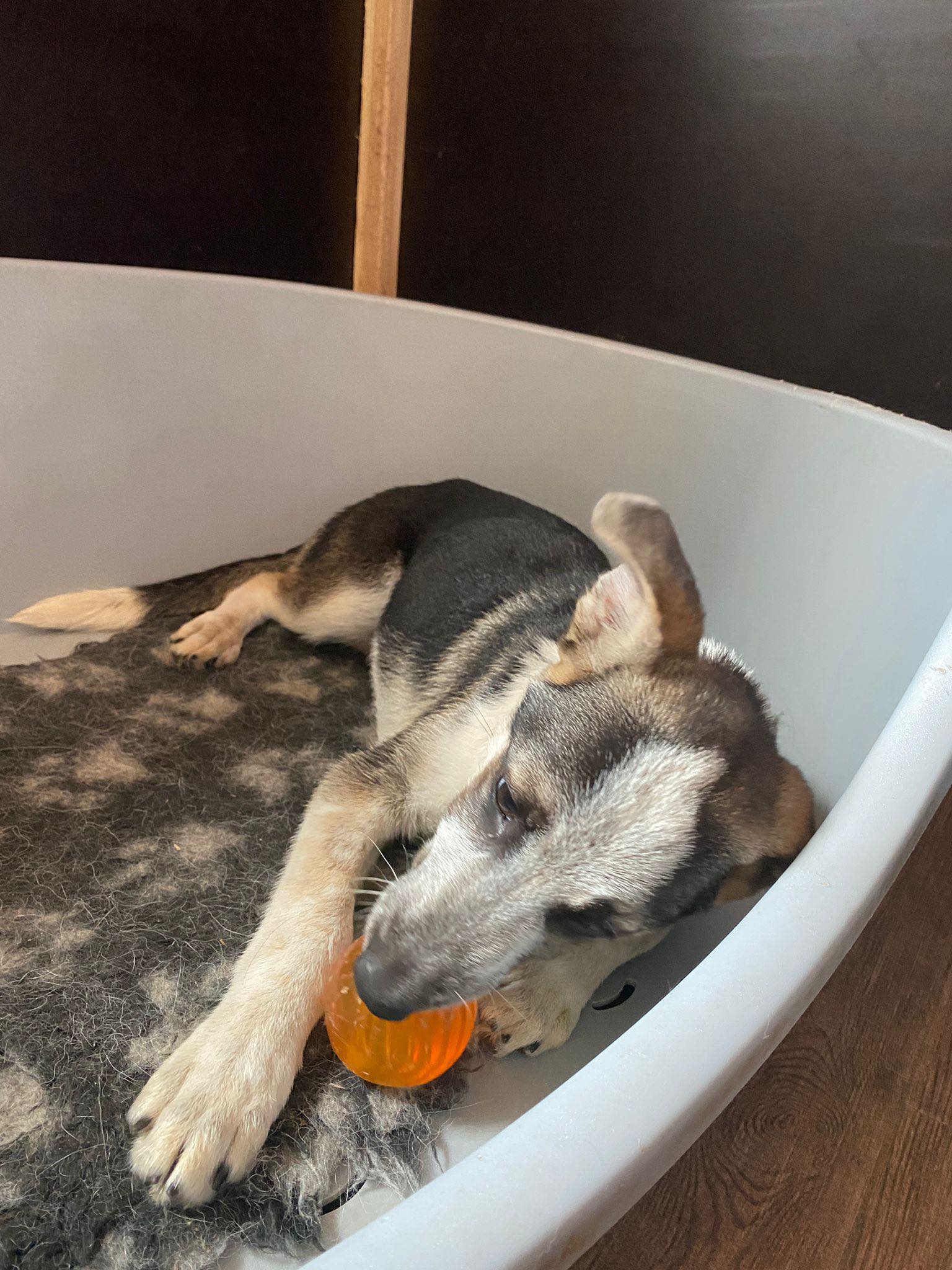 Sie versteht sich mit allen Hunden unseres großen Rudels und ist schon nach wenigen Tagen ein akzeptierter Teil der Hundefamilie.
