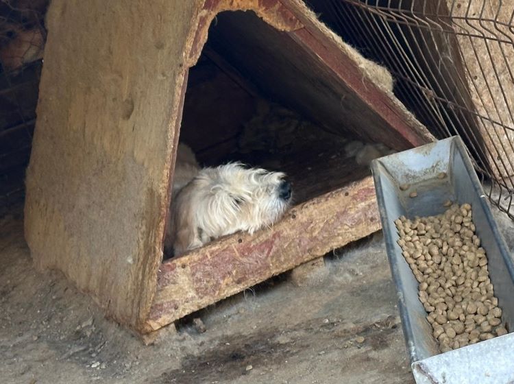 Wesen & Zutraulichkeit (Character & Trustworthiness) | vorsichtig anfassbar (carefully touchable), braucht Zweithund (needs second dog), Angstschnapper (snaps when scared), sehr unsicher (very insecure), mißtrauisch ggü Fremden (suspicious of strangers) |