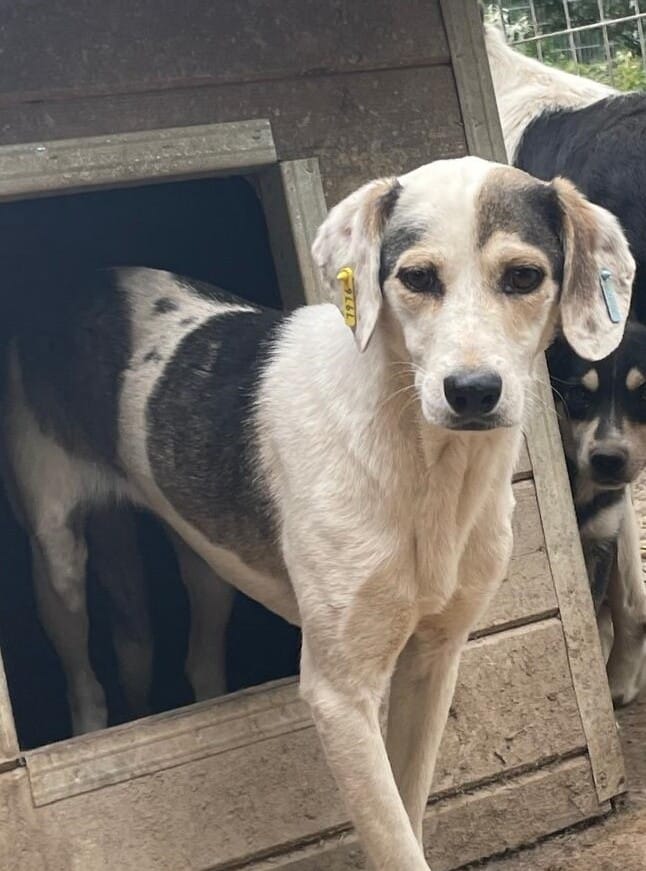 Bijou blieb lieber in ihrer Hütte, als wir den Kennel betraten. Wahrscheinlich war ihr einfach der Trubel zu viel. In der Hütte konnten wir sie erneut gut streicheln.