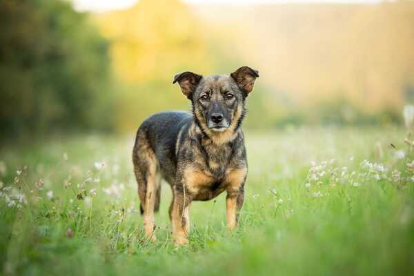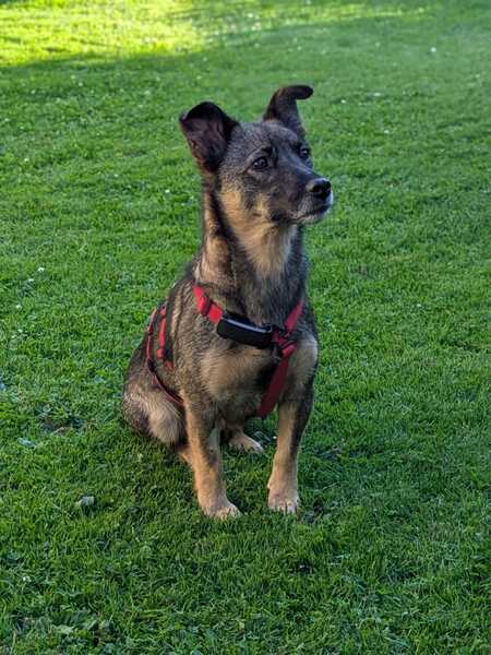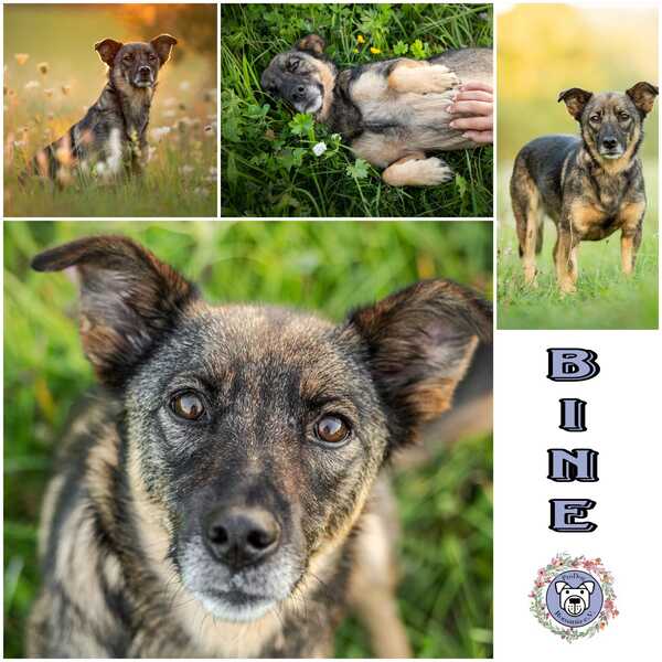 Bine ist eine bezaubernde, ruhige und freundliche Hündin, die mit ihrer sanften Art alle Herzen im Sturm erobert. Derzeit lebt sie auf ihrer Pflegestelle zusammen mit einer älteren Hündin und hat sich dort vom ersten Tag an wunderbar eingefügt. Nach ein paar kleinen Anfangspannen ist Bine schnell stubenrein geworden. Leine und Geschirr waren nie ein Problem, Leinenführigkeit und erste Kommandos wie „Sitz“ klappen schon gut. Ansonsten sind wir weiter am Üben des Hunde-Einmaleins. Zuhause ist sie von Beginn an sehr ausgeglichen, kommt schnell zur Ruhe und schläft nachts schon immer durch. Auch an neuen Orten findet sie rasch Entspannung und meistert ebenfalls schon ein paar Stunden alleine bleiben – zusammen mit ihrer Hundeschwester – problemlos. Treppensteigen klappt nach einer kurzen Übungssession auch sehr gut.