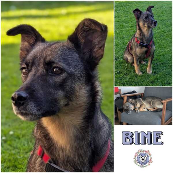 Bine liebt Kuscheleinheiten über alles und sucht dabei engen Kontakt zu ihren Menschen. Sie ist Menschen gegenüber immer freundlich und charmant – egal ob männlich oder weiblich, Teenager oder Rentner mit Rollator – und begleitet ihre Pflegemama sogar regelmäßig in eine stationäre Jugendhilfeeinrichtung, wo sie der Liebling aller Jugendlichen ist. Bei Futter zeigt sie ein kleines Ressourcenthema, das sich mit etwas Management gut händeln lässt – Leckerlis und Kauartikel nebeneinander sind kein Problem, nur während des Fressens möchte sie nicht, dass andere Hunde zu nah kommen.
