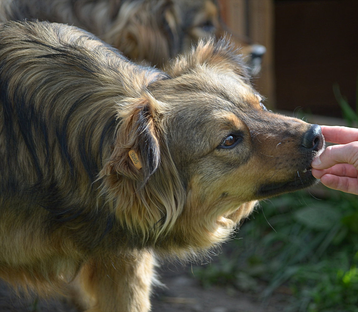 Der hübsche BINGO kam immer wieder neugierig zu uns und holte sich dann auch die Leckerli bei uns ab. Dabei konnten wir ihn vorsichtig an der Schnauze berühren. Zu mehr fehlte ihm leider der Mut.