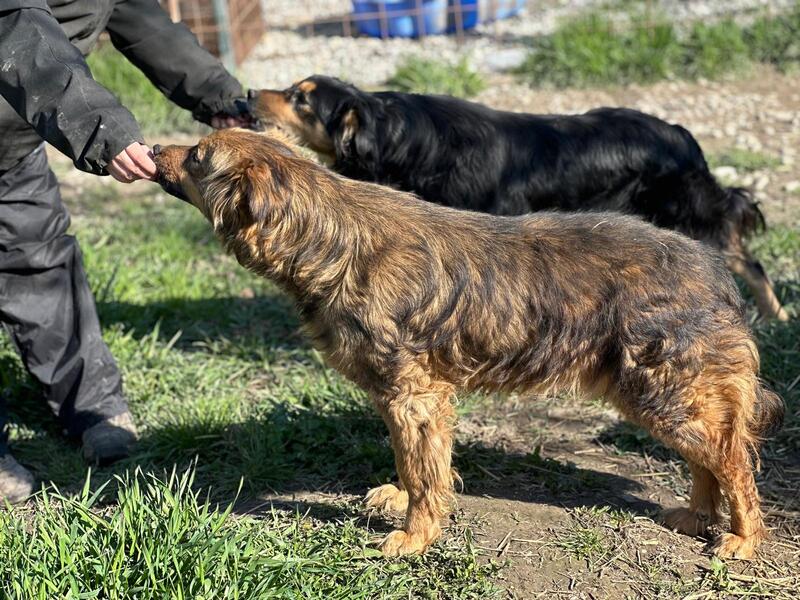 Bingo lebt mit einer festen Gruppe im Auslauf. Er ist mit Abstand der Zutraulichste, der für Leckerchen sehr nah kommt. Aber es würde Arbeit bedeuten ihn zutraulicher zu bekommen. Er lebt schon zu lange ohne den Menschen in einer gemischten Hundegruppe. Er sollte auch mindestens Zweithund werden.