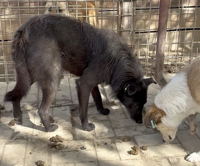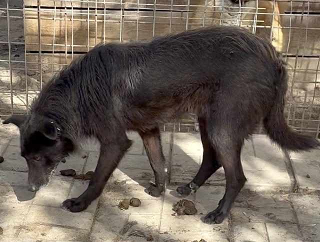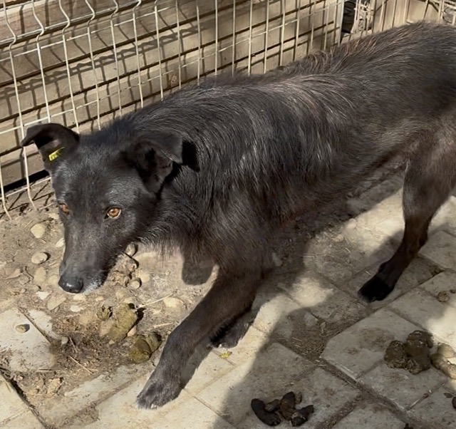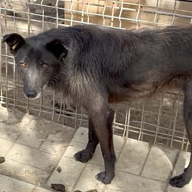BINIE war bei unserem Besuch im März 2024 nocht recht neu in Bucov und kommt dort nicht gut zurecht. Als wir den Kennel am ersten Tag betraten, lag sie zurückgezogen in ihrer Hütte und wollte diese nicht verlassen. Als wir am nächsten Tag wiederkamen, verließ sie die Hütte bereits nach kurzer Zeit. Erst jetzt konnten wir erkennen, dass sie viel zu dünn ist. In unserer Anwesenheit konnte sie in der Hütte etwas fressen und nahm unsere Leckerchen aus der Hand. Dabei konnten wir BINIE leicht an der Schnauze berühren. Wir suchen zeitnah eine Lösung bei erfahrenen Menschen für die dünne Hündin.
