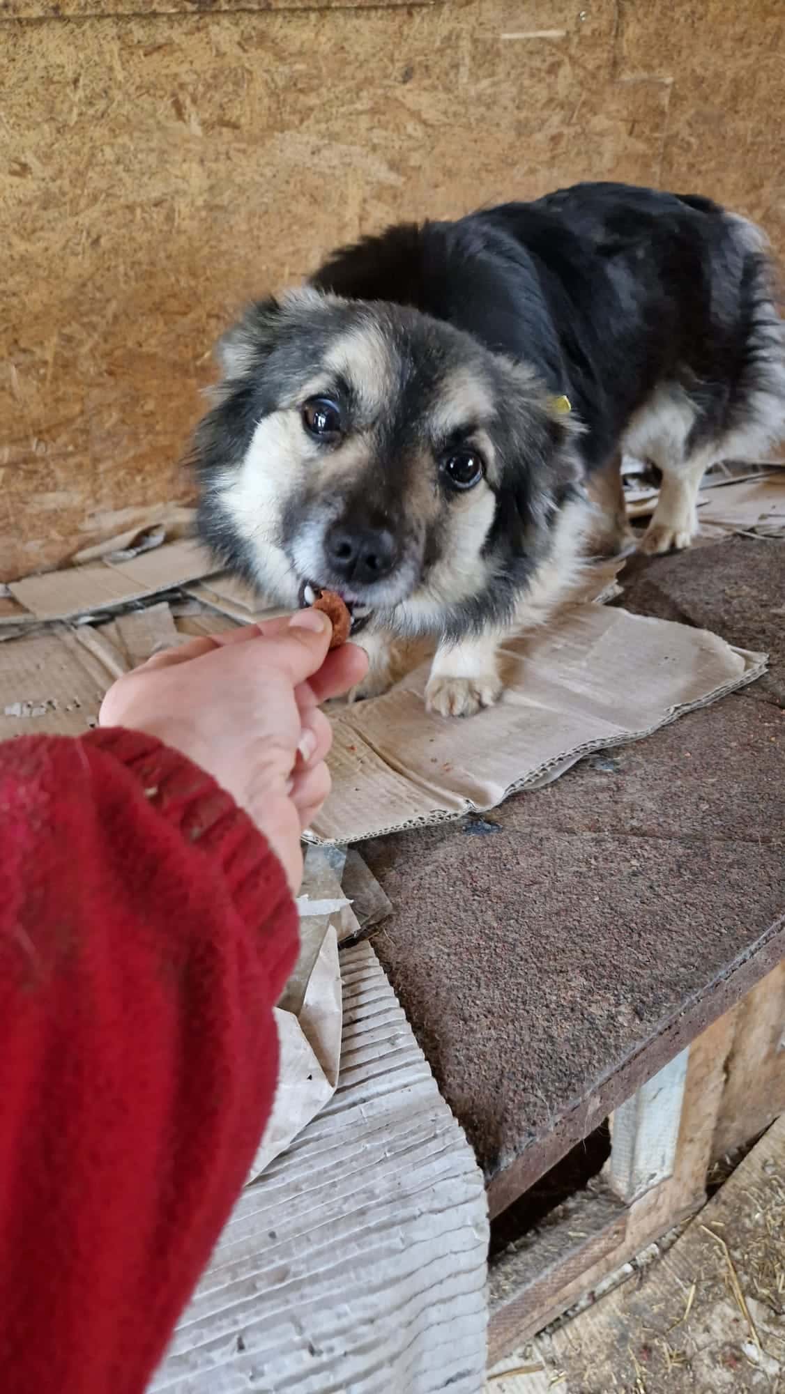 ließ sich in der Situation nur vorsichtig berühren und wich dann aus, wir glauben aber, dass sie in einer anderen Umgebung mit Ruhe und etwas Zeit gut auftauen wird