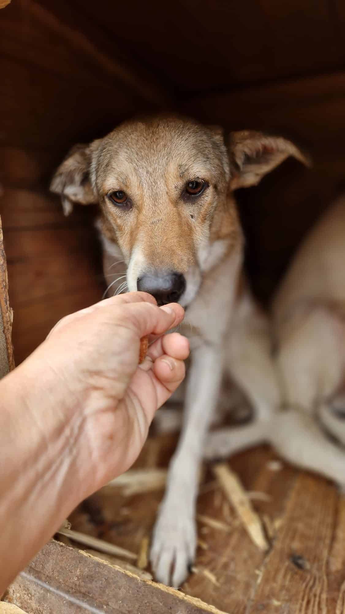 Die freundliche BIRDY hat sich positiv entwickelt. Anfangs lag sie zwar zurückgezogen in einer Hütte, als sie aber merkte, dass wir es gut mit ihr meinen, freute sie sich über die Aufmerksamkeit. Sie ist zwar weiterhin etwas unsicher, nimmt aber Futter aus der Hand, lässt zarte Berührungen zu und zeigte nie ein Abwehrverhalten. Die sehr verträgliche Hündin taut sicher mit Zeit und Ruhe gut auf, ein netter Ersthund würde ihr dabei helfen.